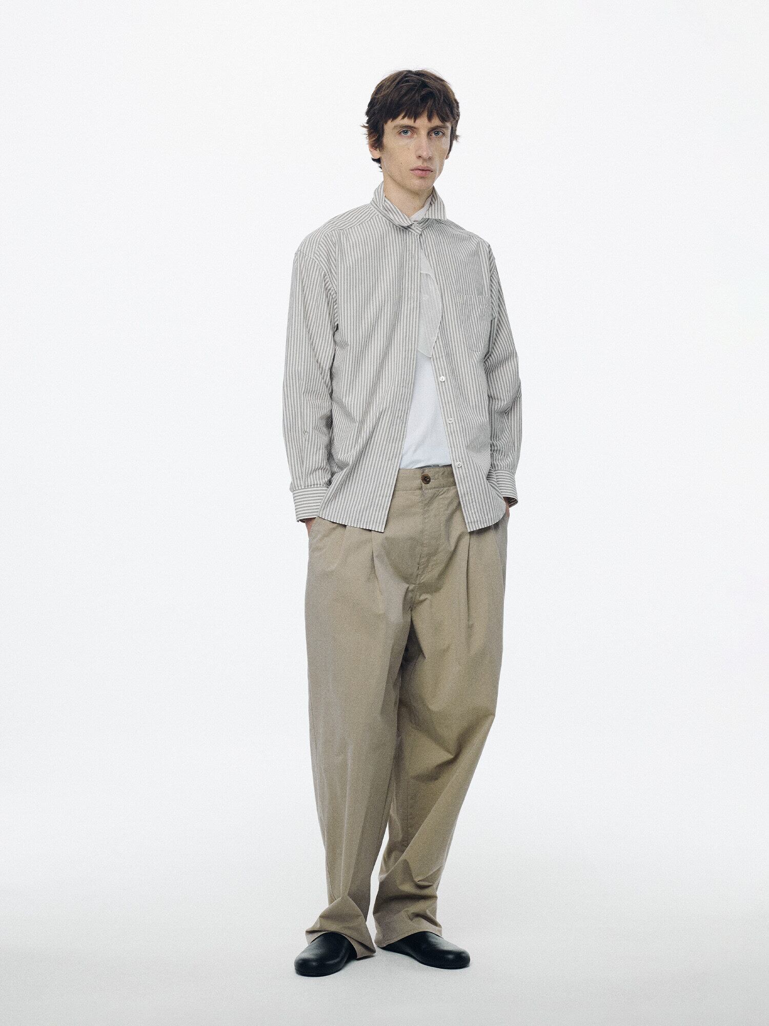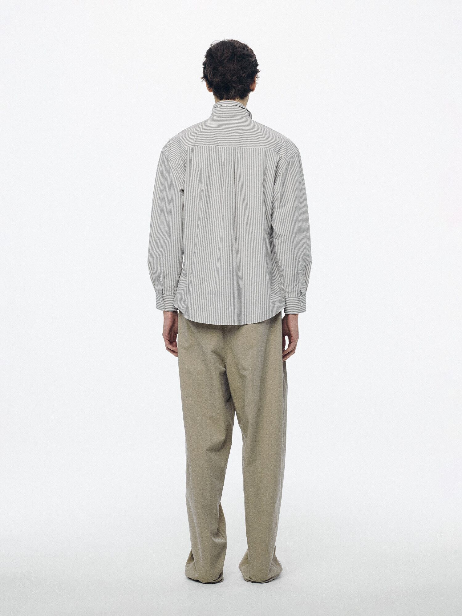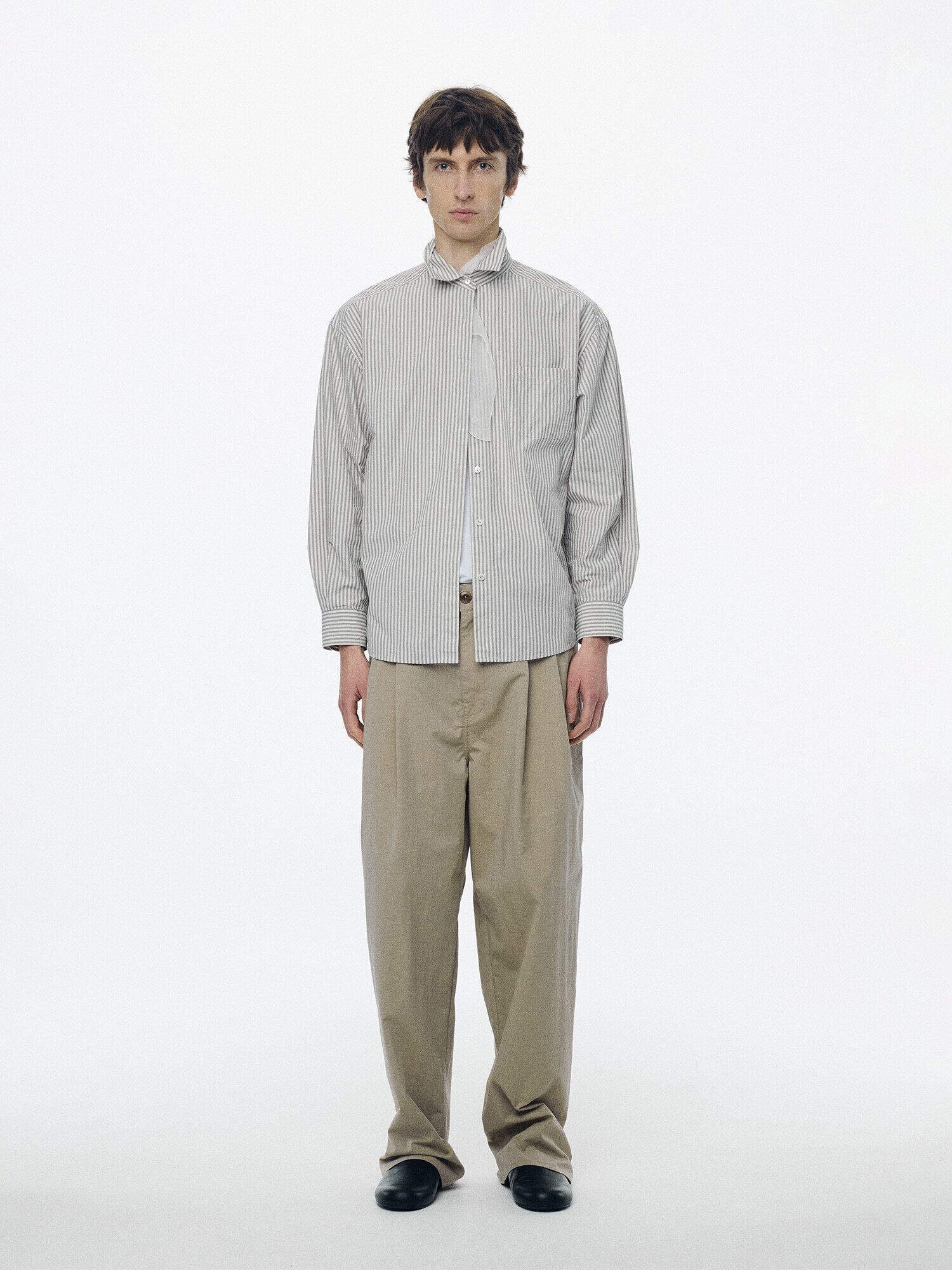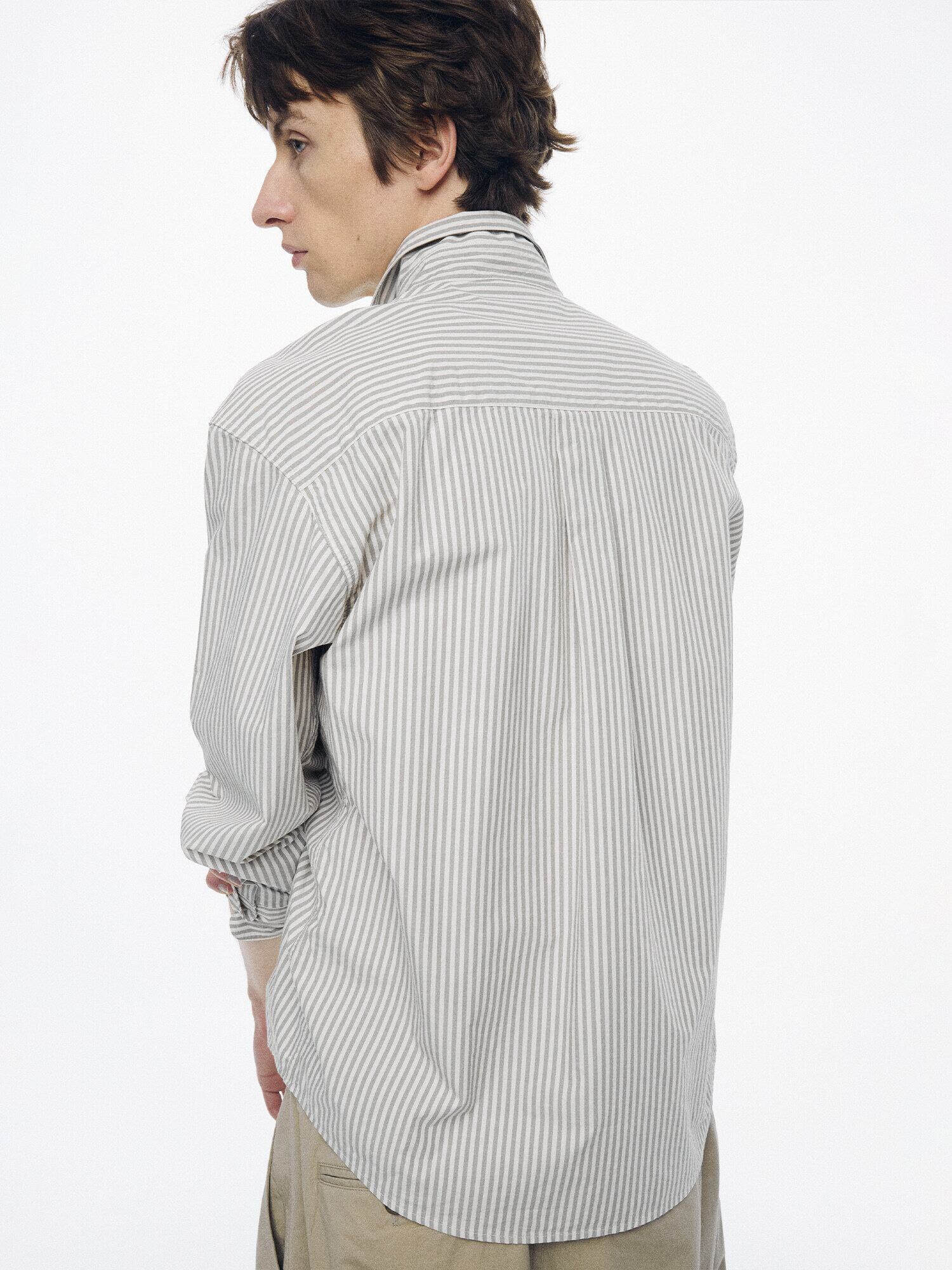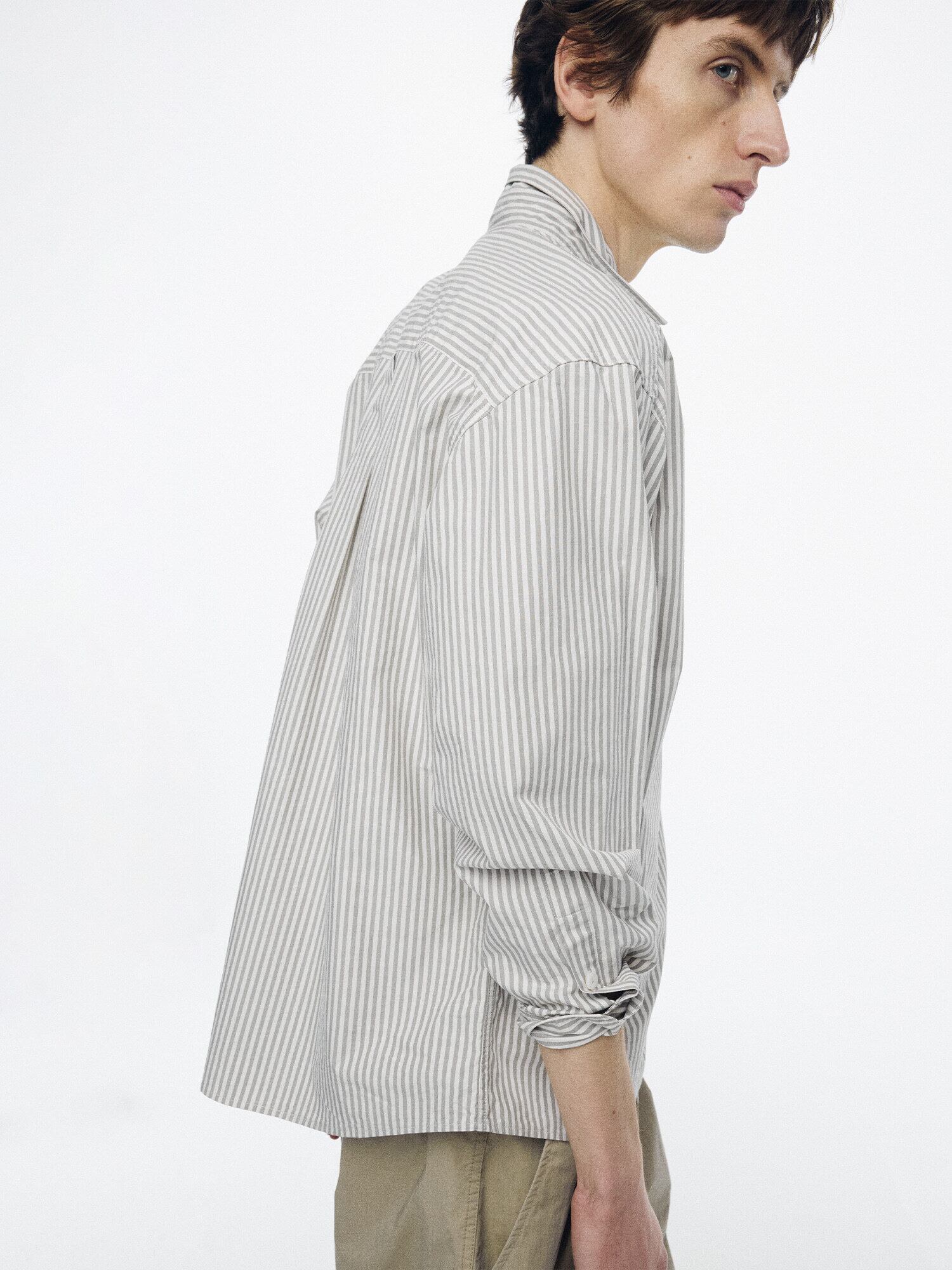 [NOTHING WRITTEN] Monday cotton shirt (Gray stripe, M)