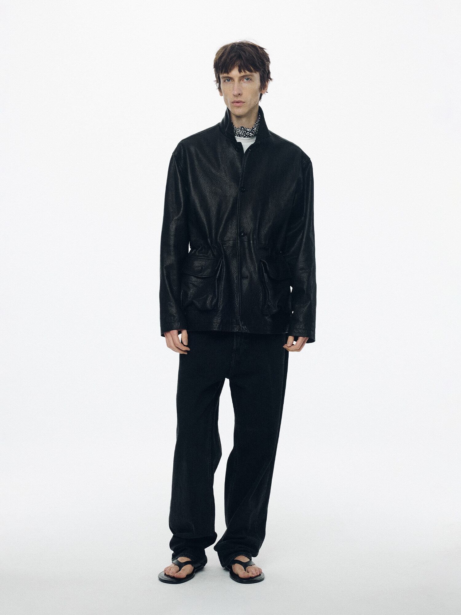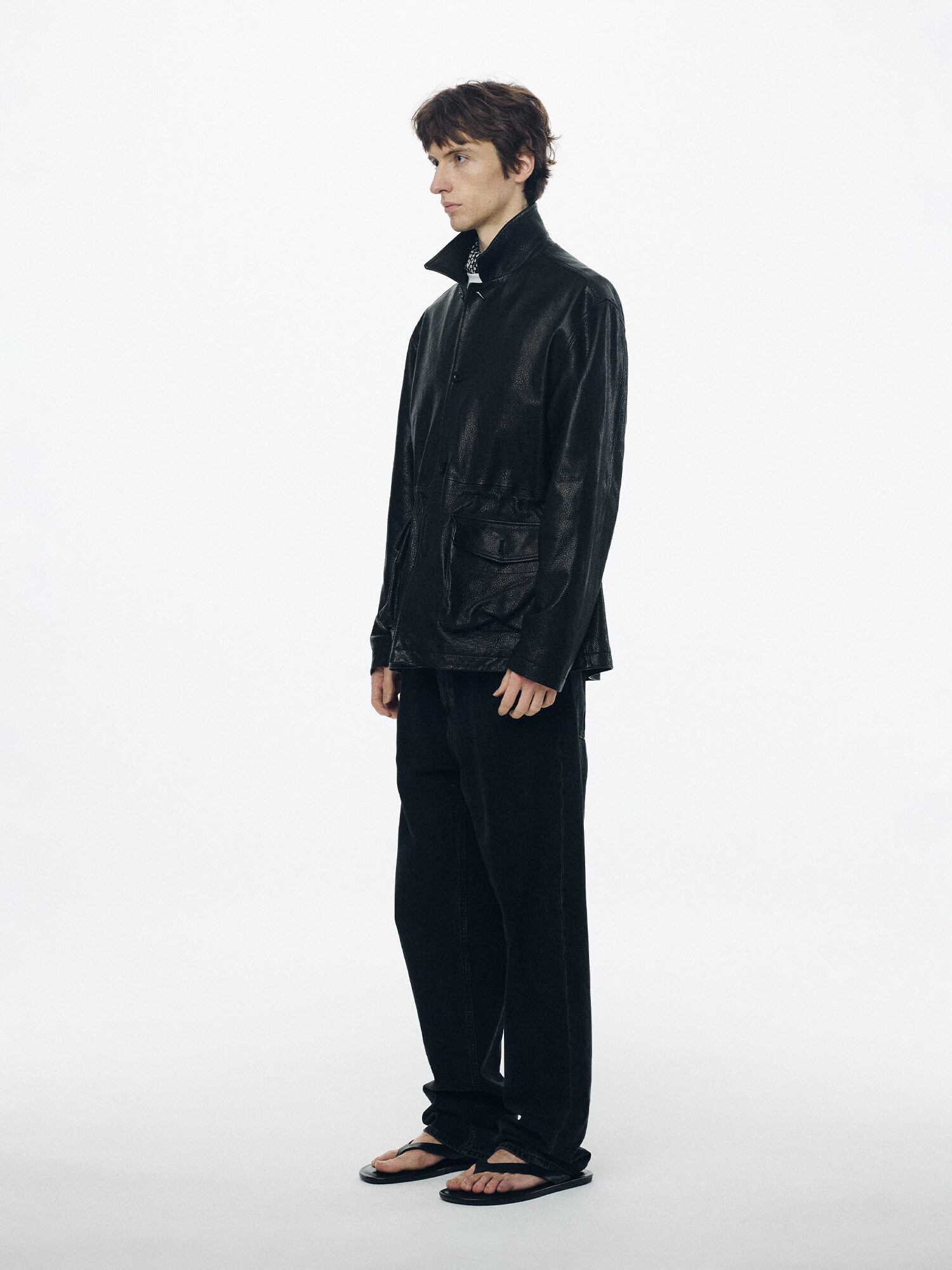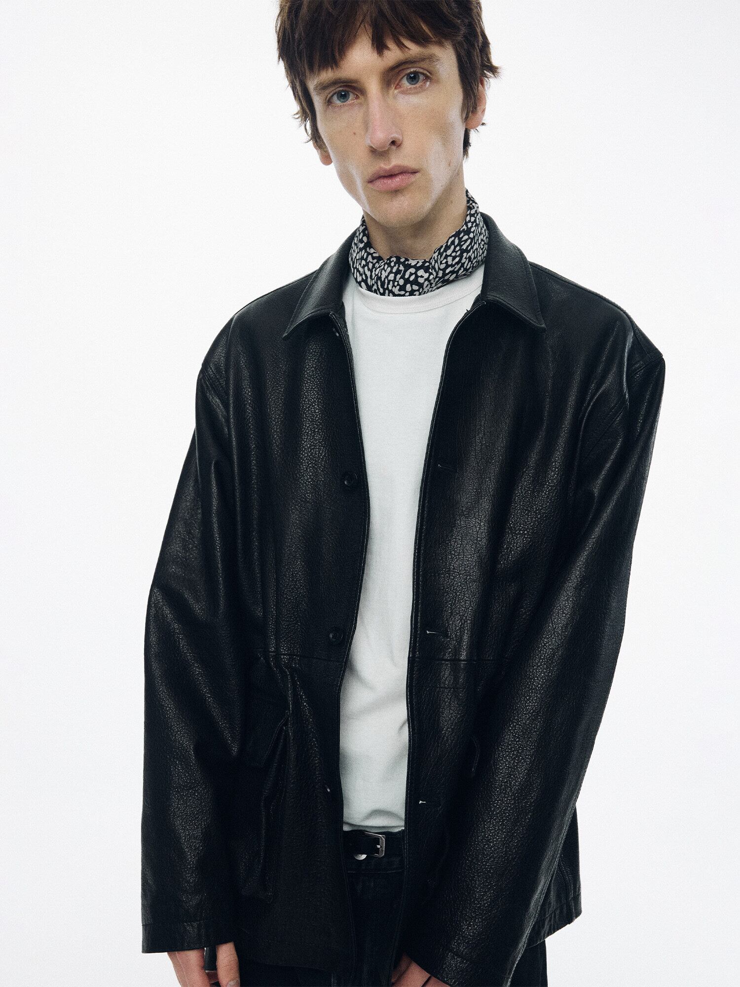 [NOTHING WRITTEN] Arden leather jacket (Black, M)