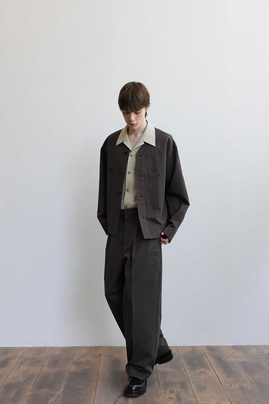 [LE17SEPTEMBRE][MEN] COLLARLESS WORK JACKET [BROWN] 正規品 韓国ブランド 韓国通販 韓国代行 韓国ファッション LE 17 SEPTEMBRE ル 17 セプテンバー 韓国 店舗