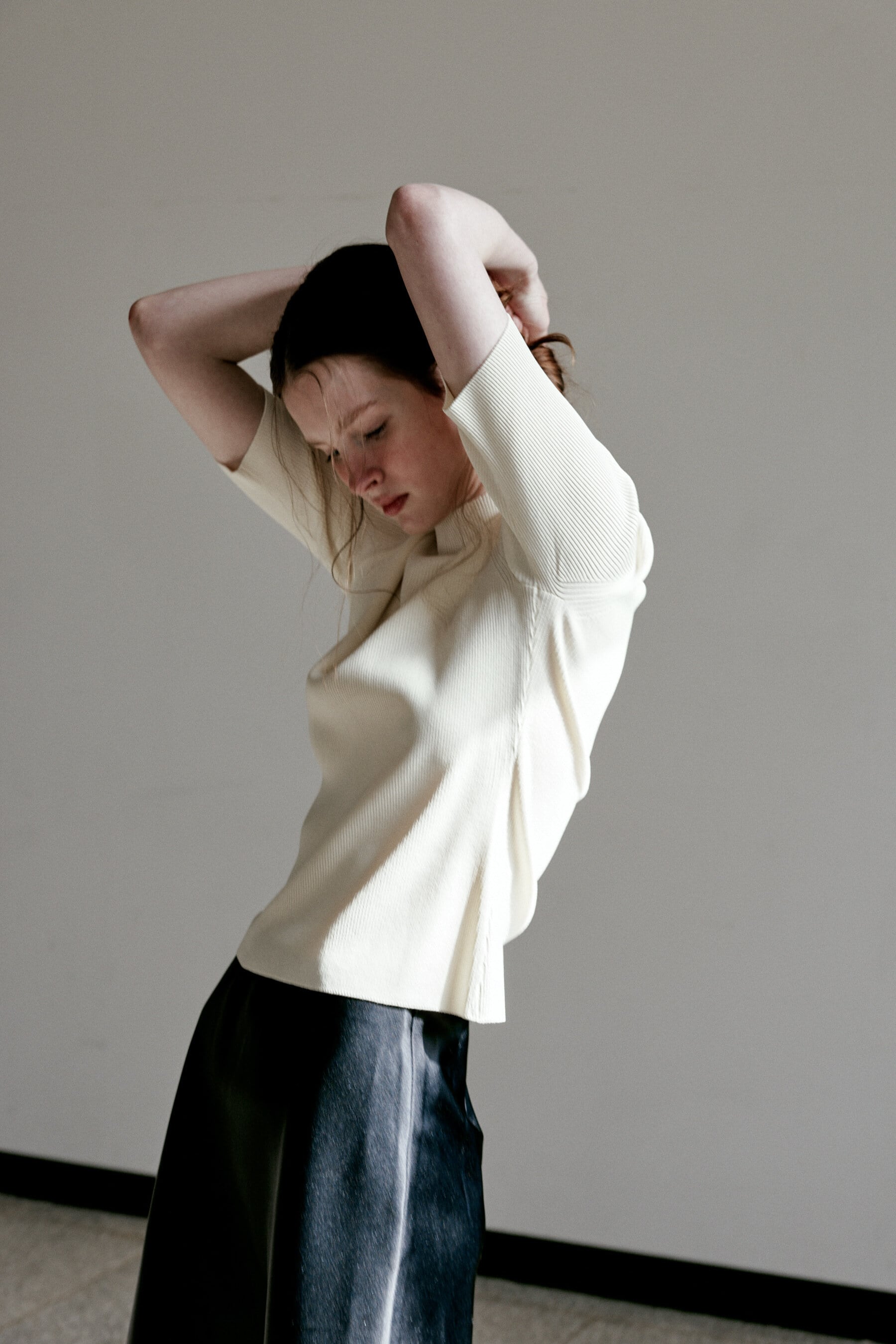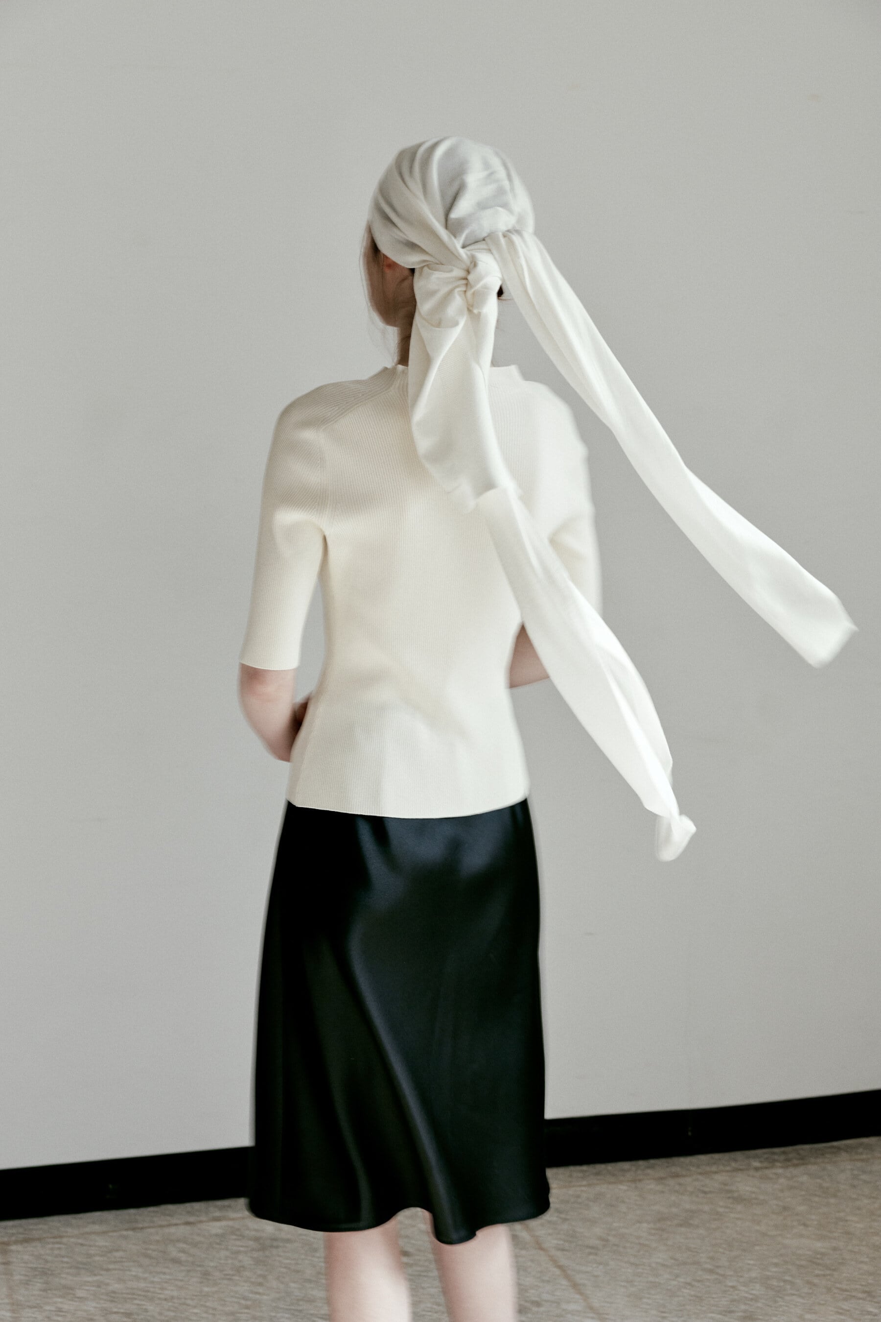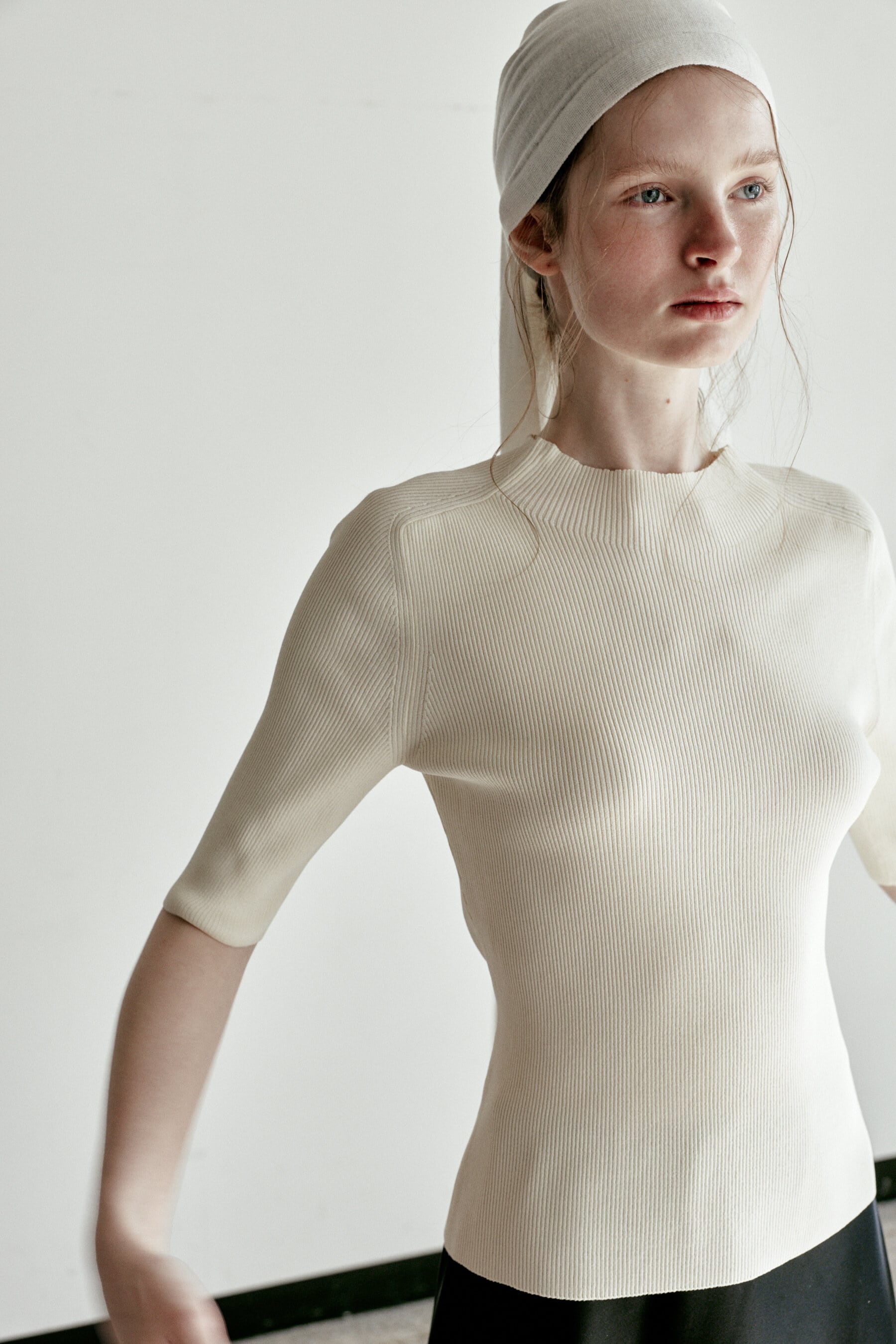 [LE17SEPTEMBRE] MOCKNECK SLEEVE KNIT TOP [IVORY]