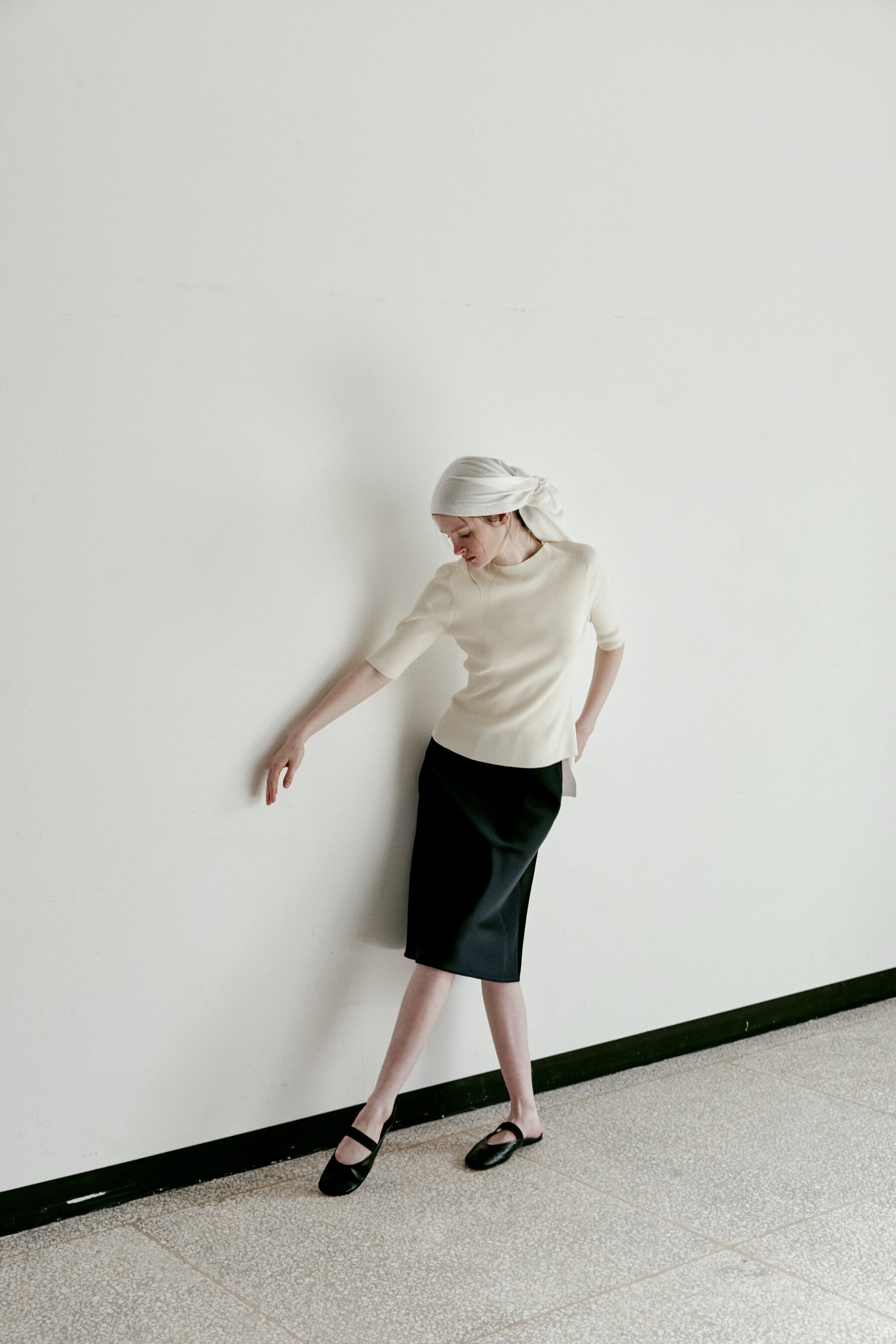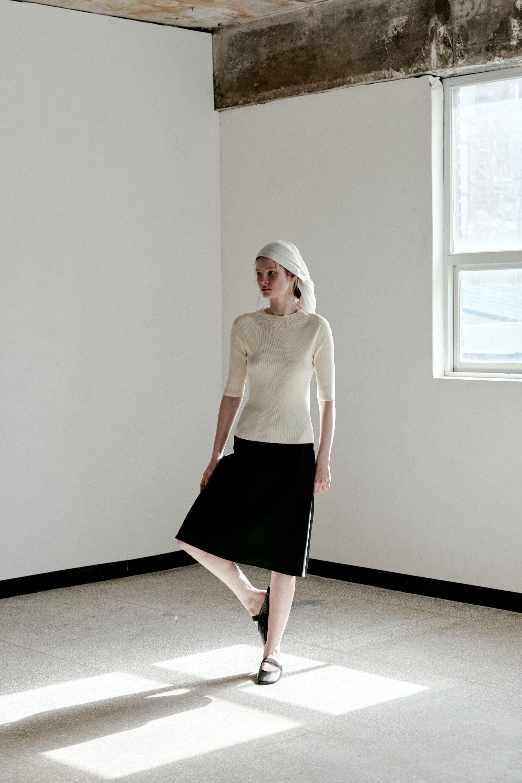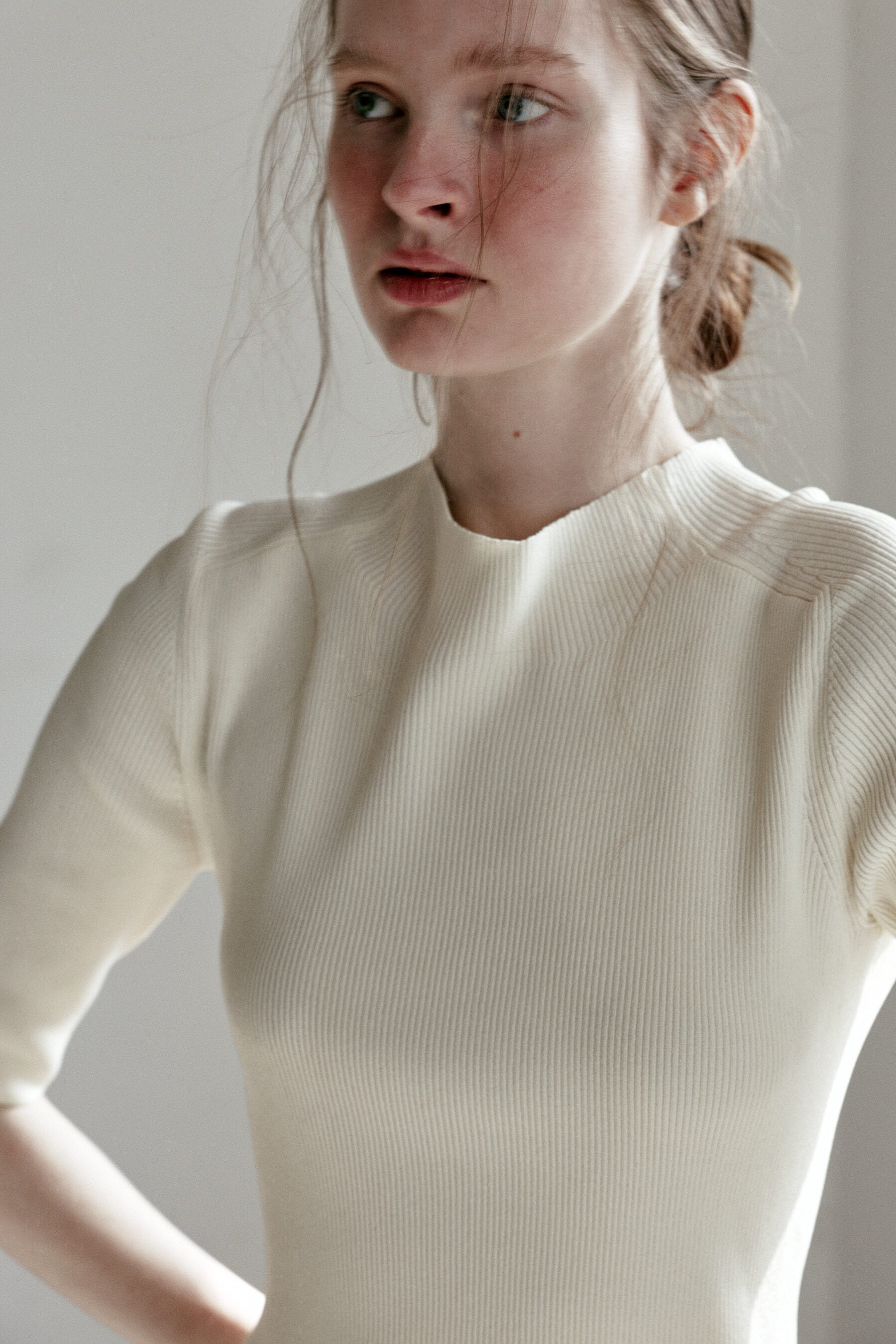 [LE17SEPTEMBRE] MOCKNECK SLEEVE KNIT TOP [IVORY]