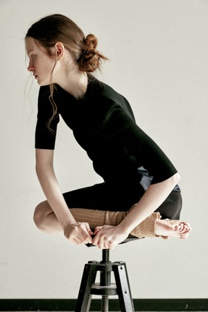 [LE17SEPTEMBRE] MOCKNECK SLEEVE KNIT TOP [BLACK]