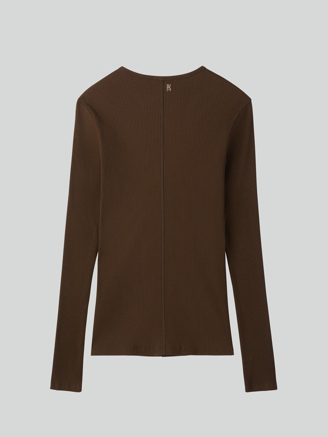 [RECTO] RIBBED JERSEY LONG-SLEEVE TOP (KHAKI BROWN)