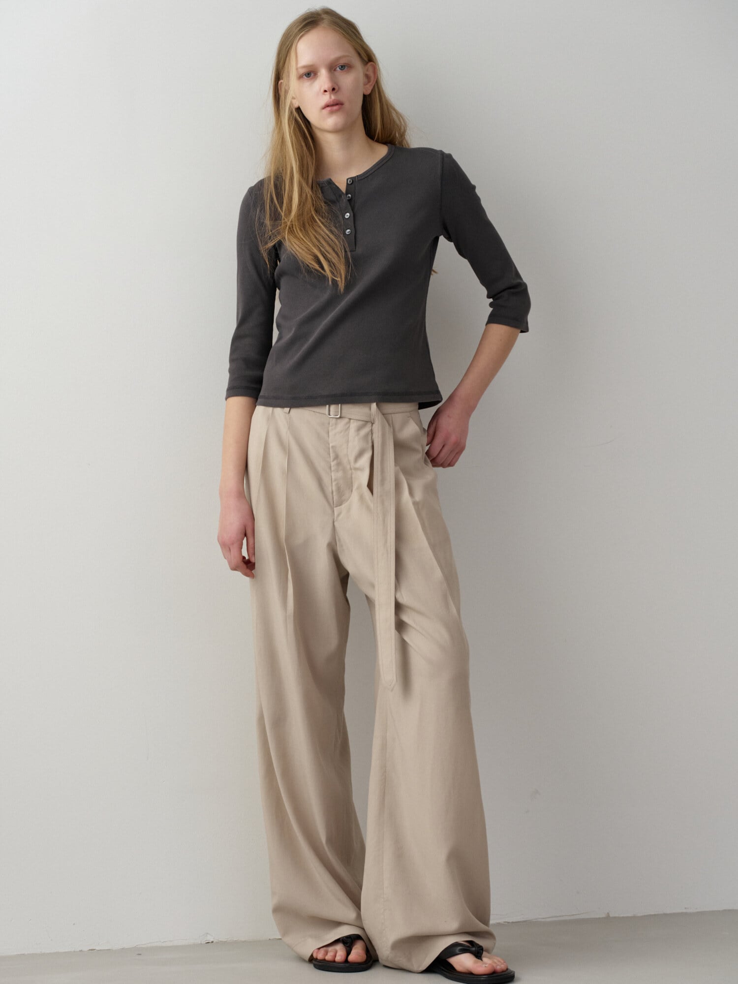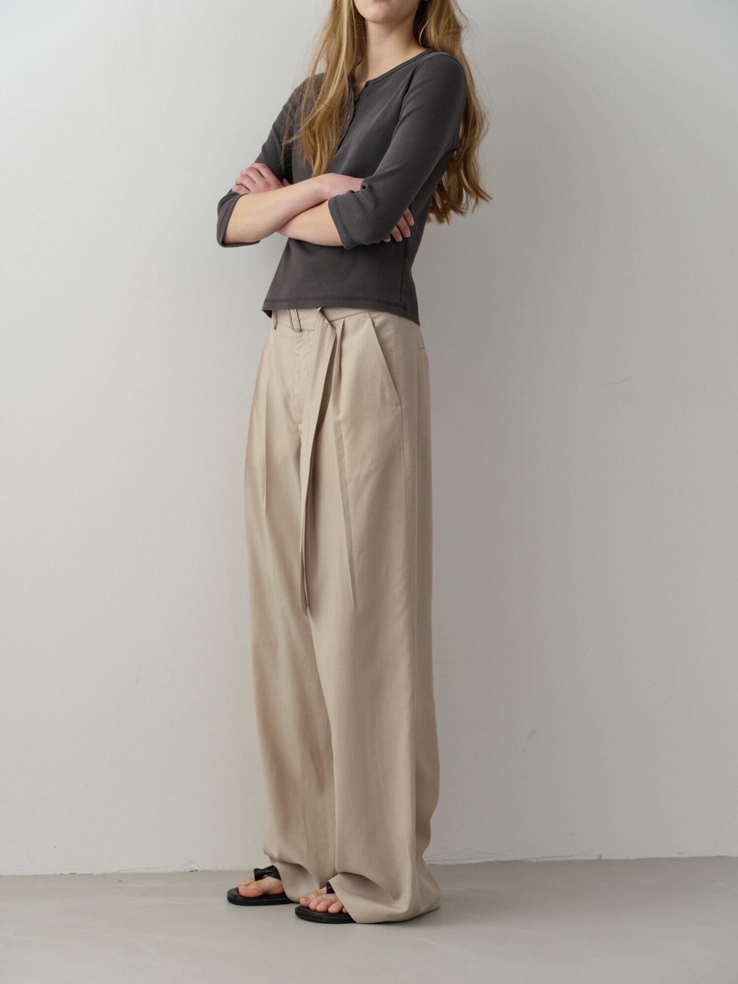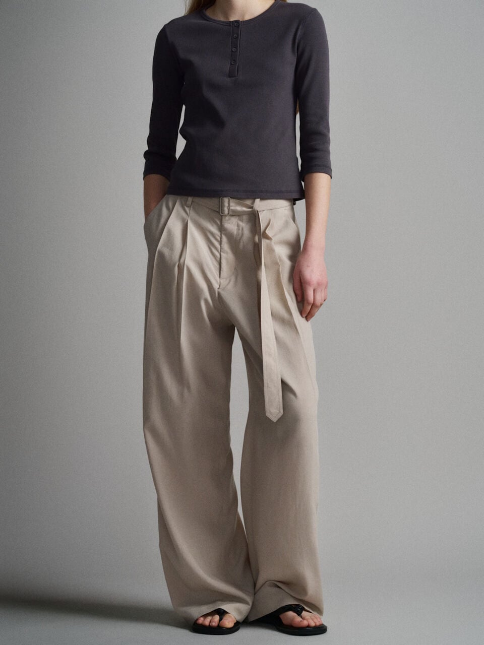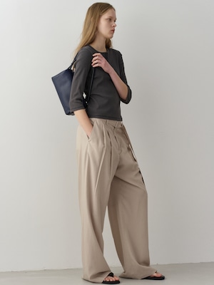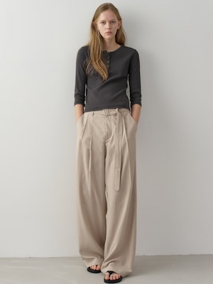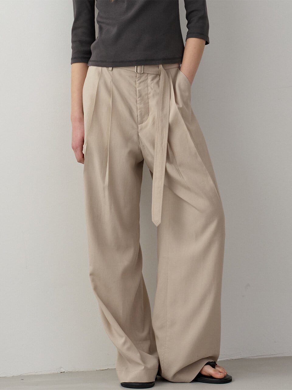 [FACADE PATTERN] Belted Two-Tuck Wide Pants_Olive Beige
