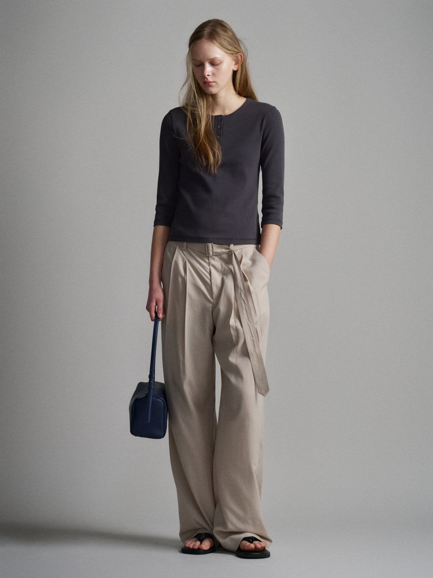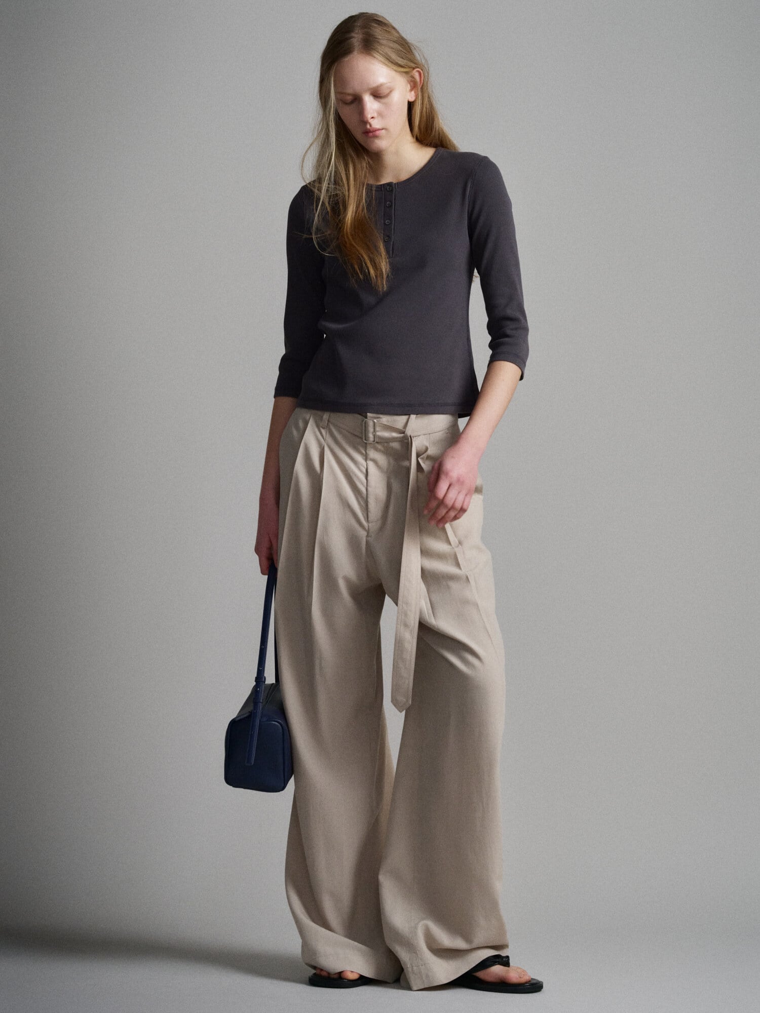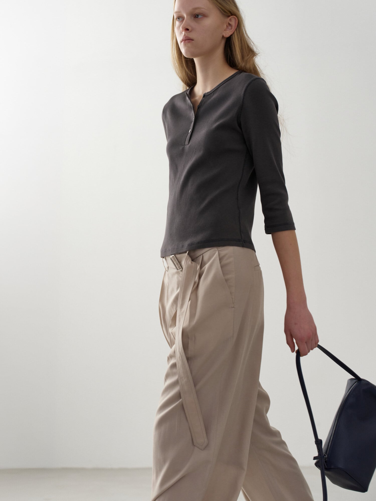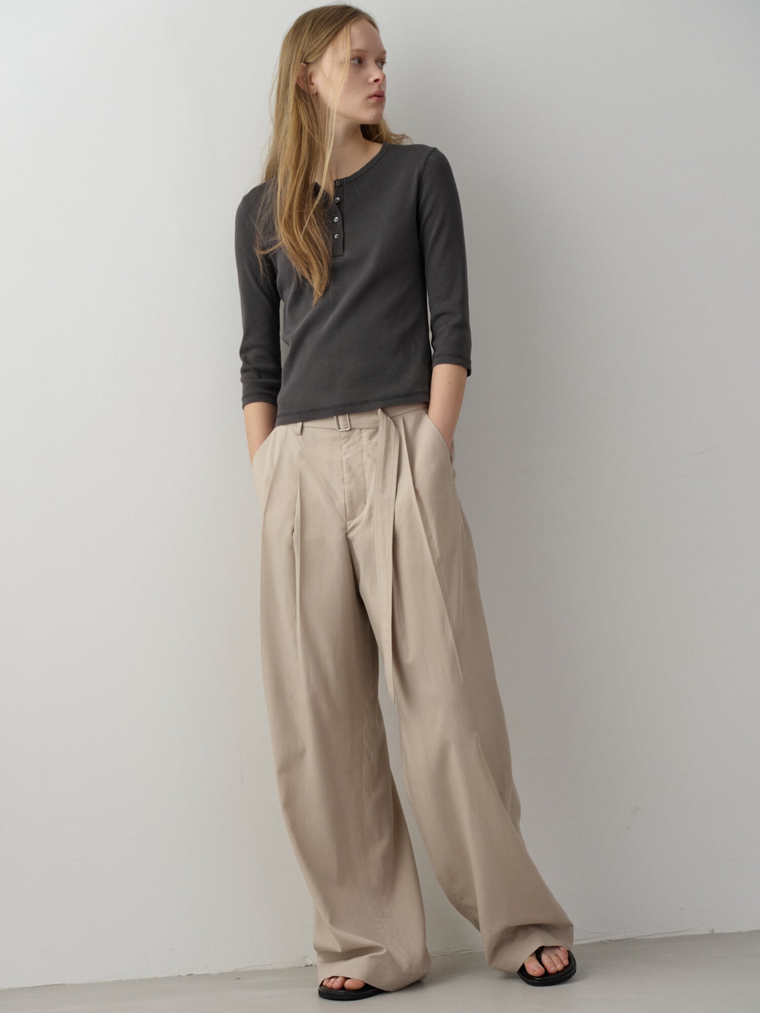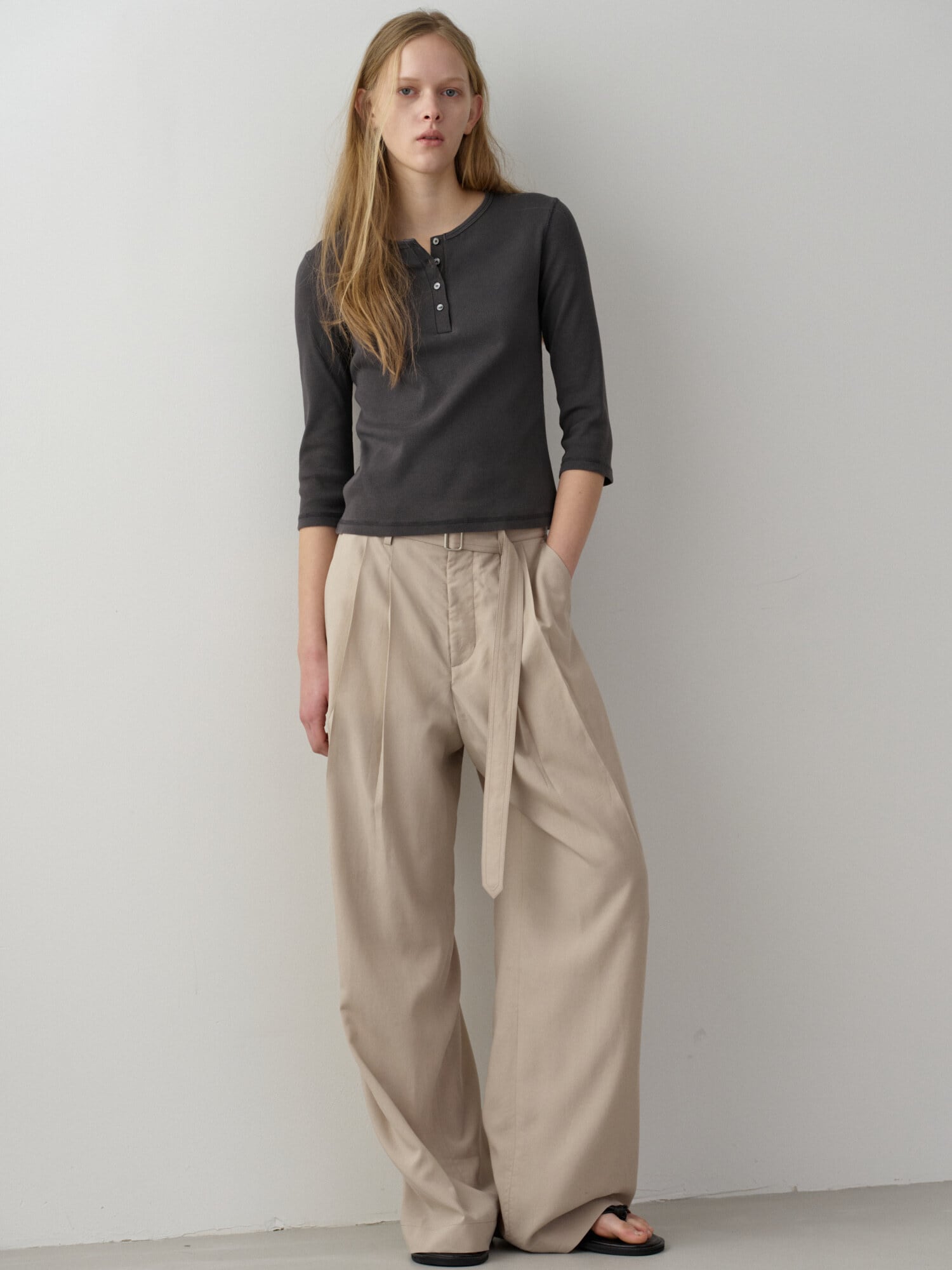 [FACADE PATTERN] Belted Two-Tuck Wide Pants_Olive Beige