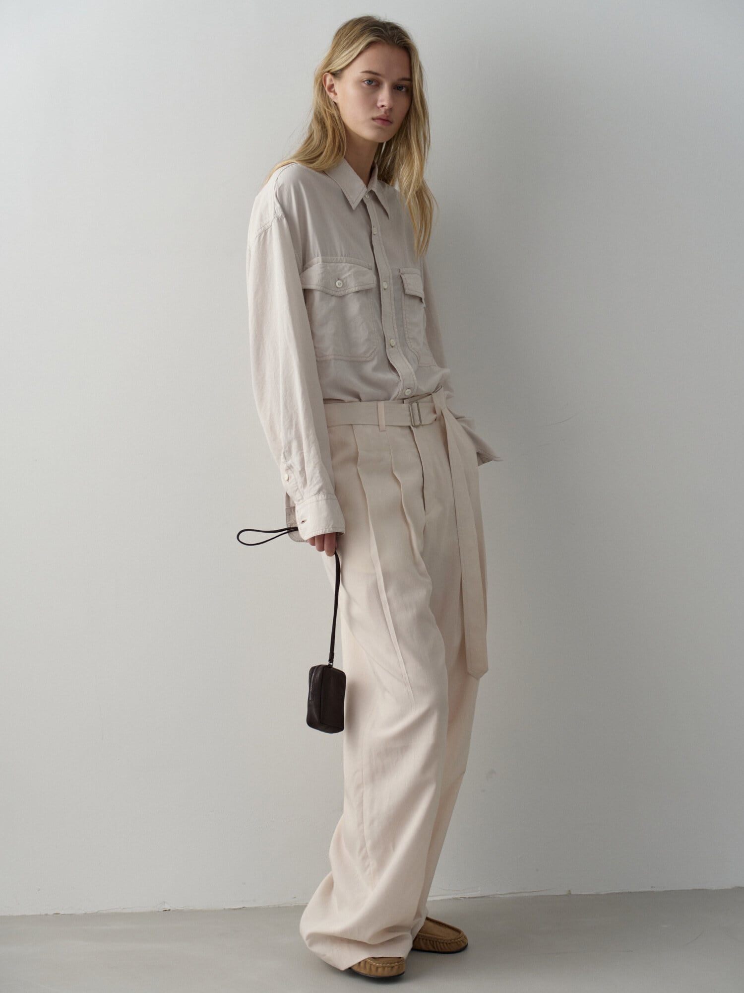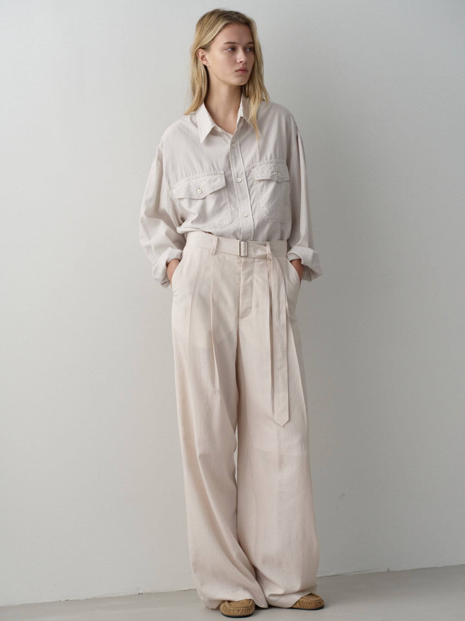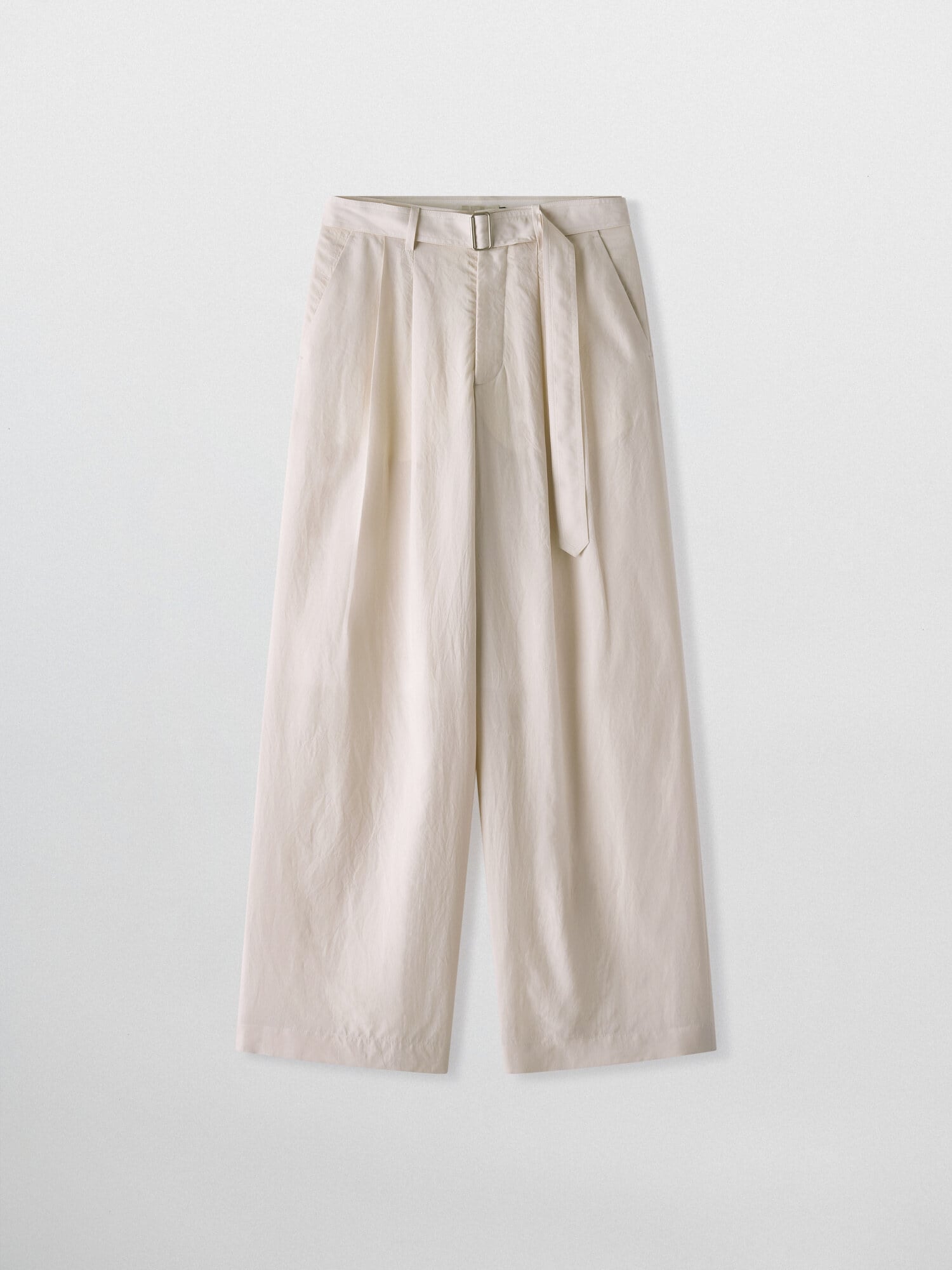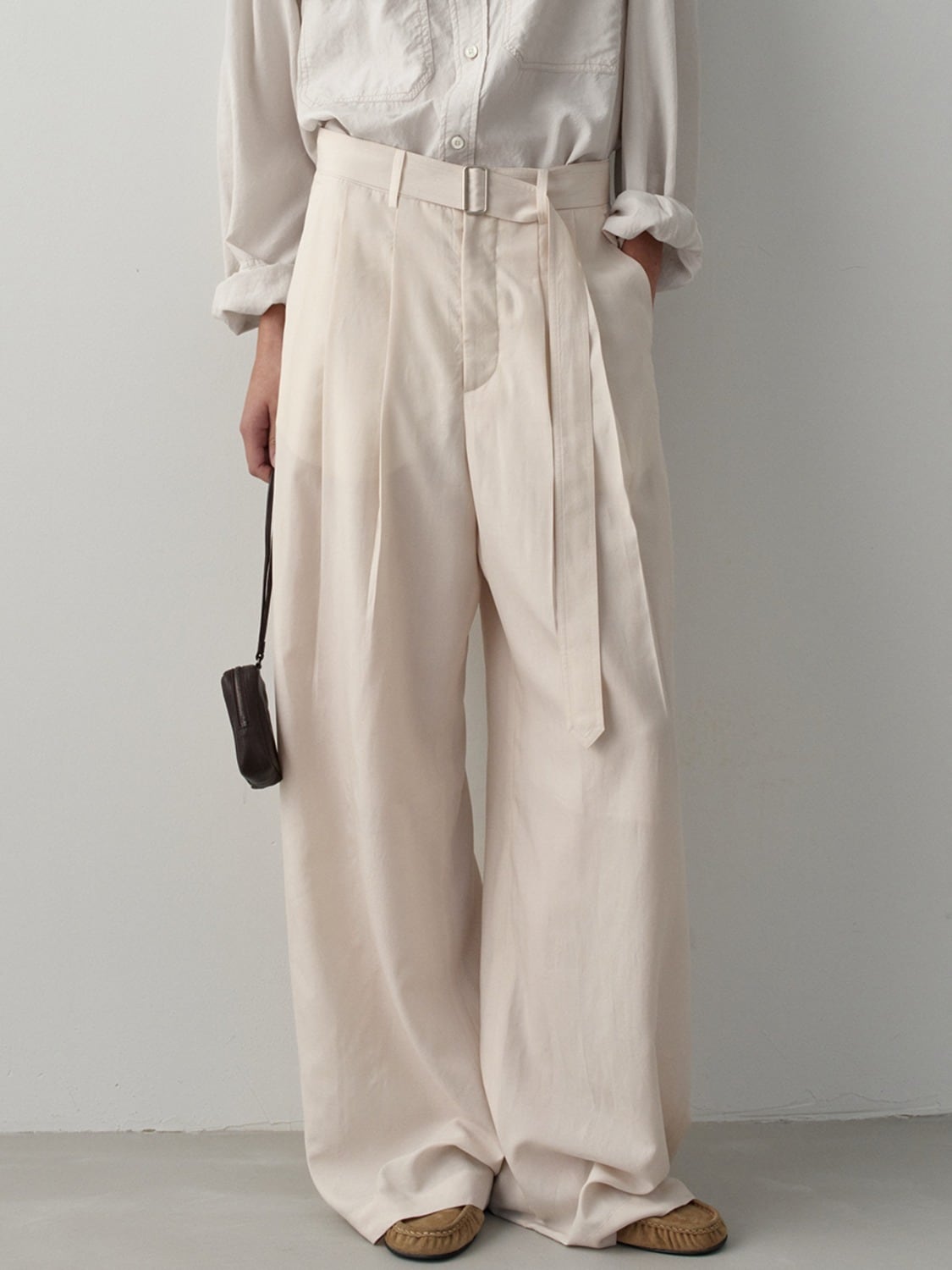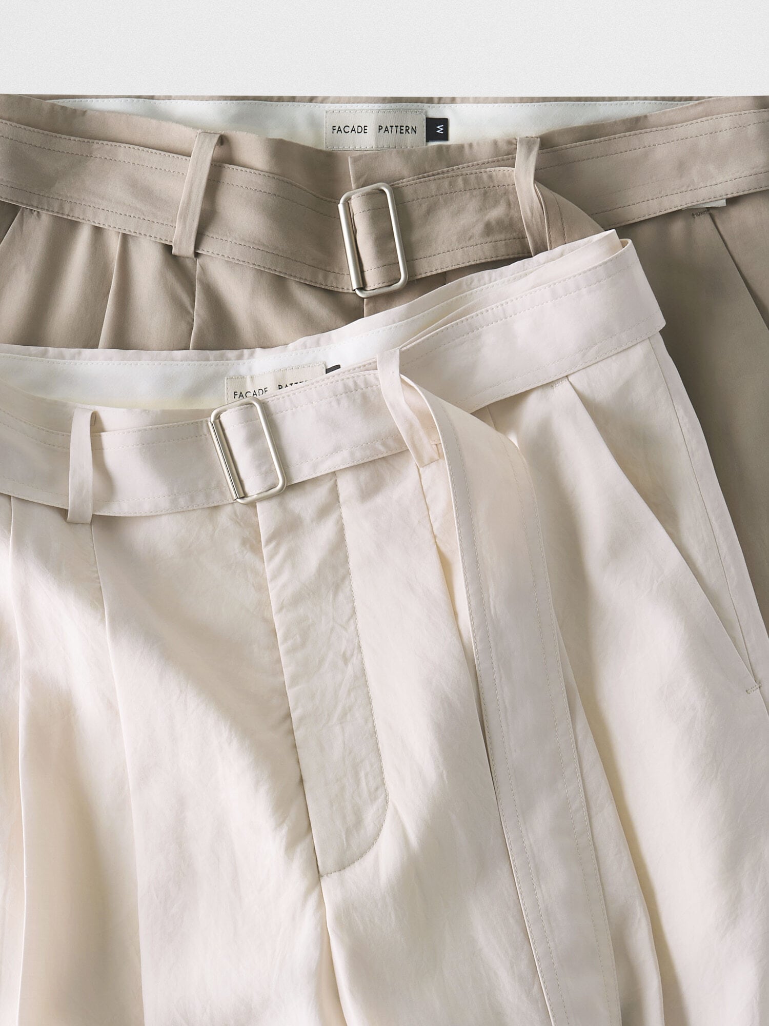 [FACADE PATTERN] Belted Two-Tuck Wide Pants_Cream