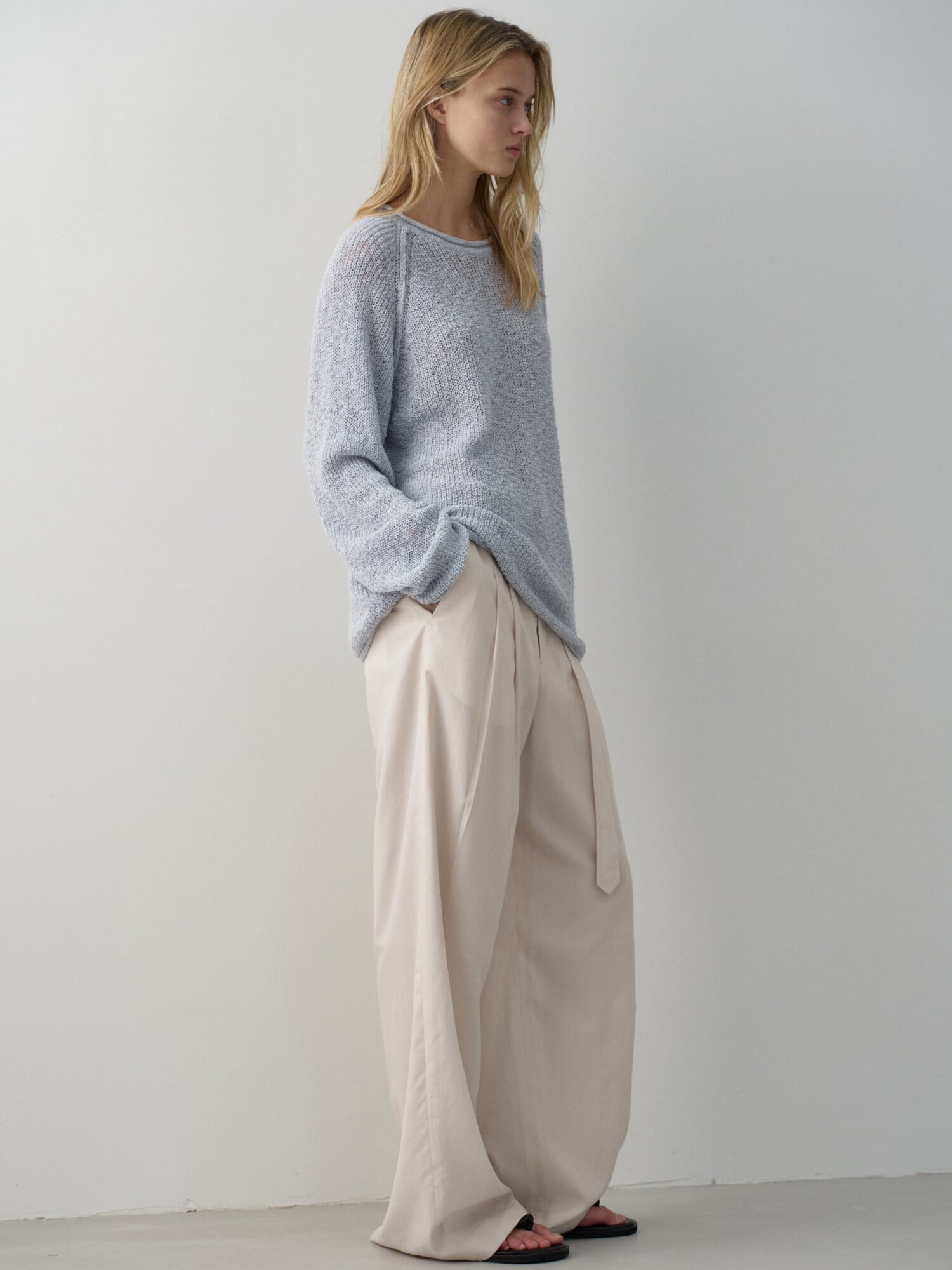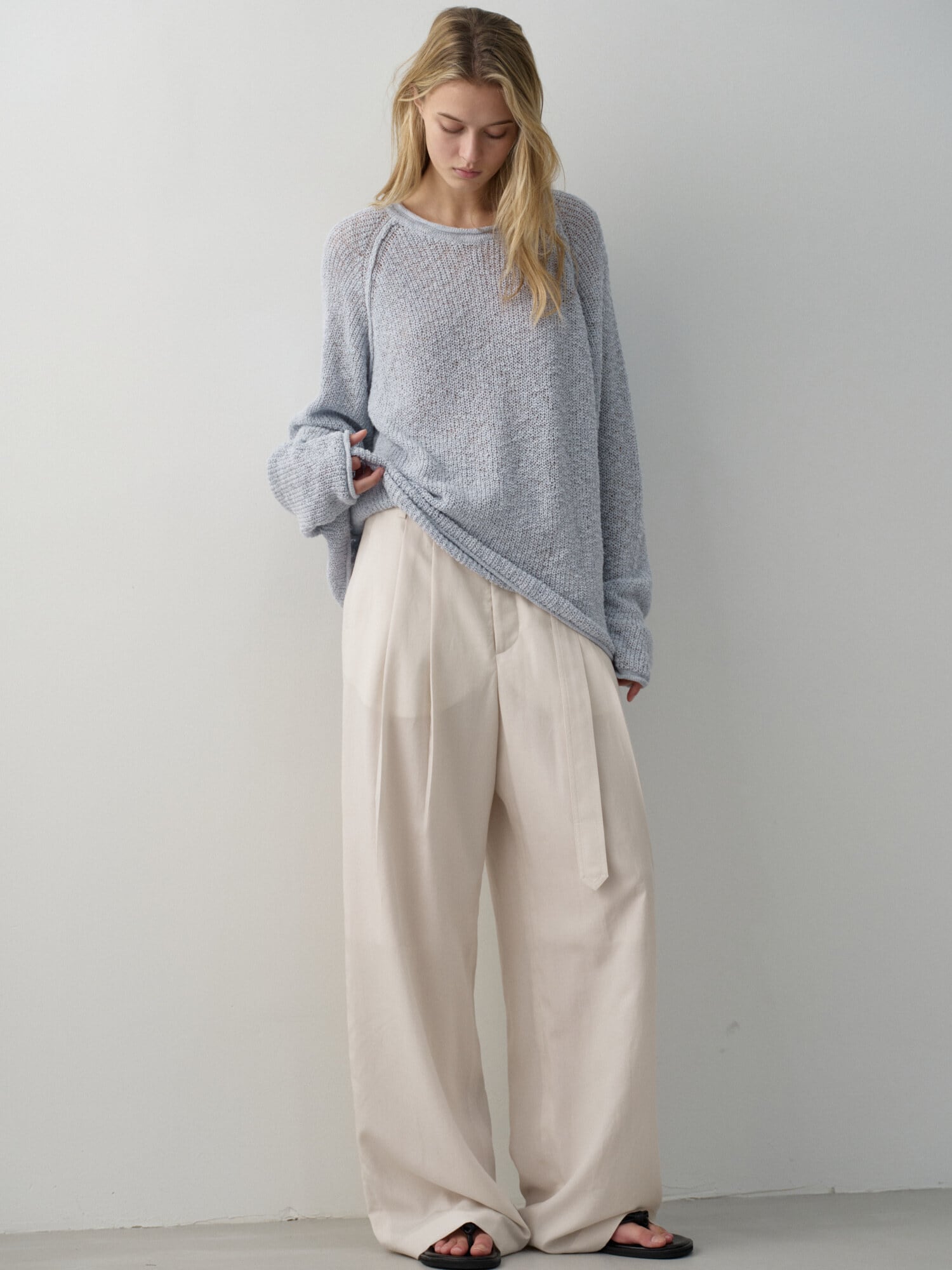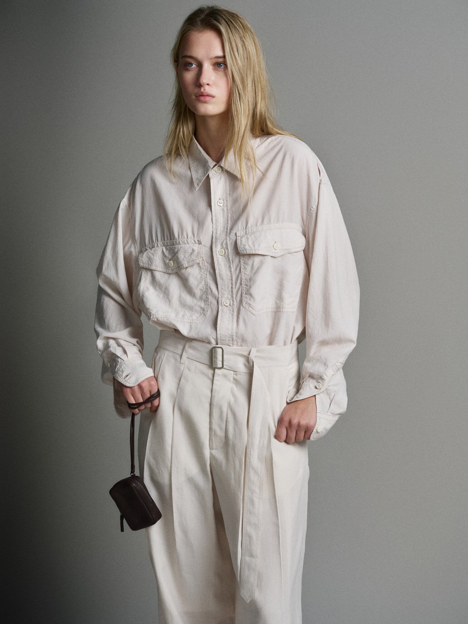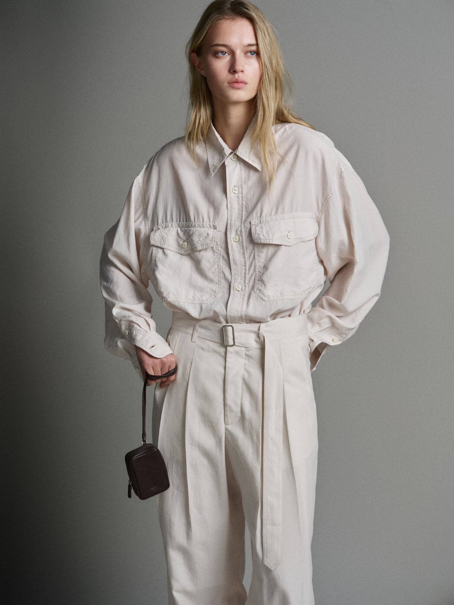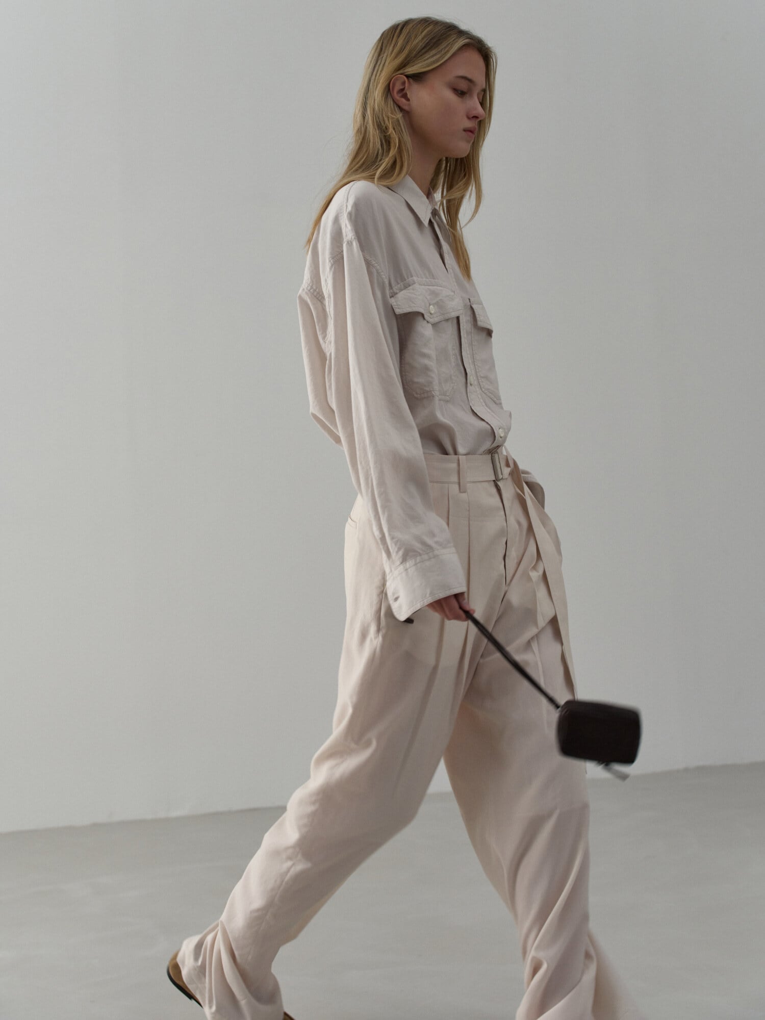 [FACADE PATTERN] Belted Two-Tuck Wide Pants_Cream