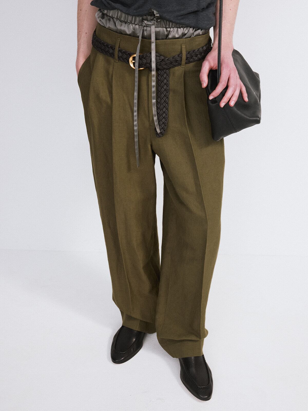 [RECTO] LINEN BLEND PLEATED PANTS (KHAKI)