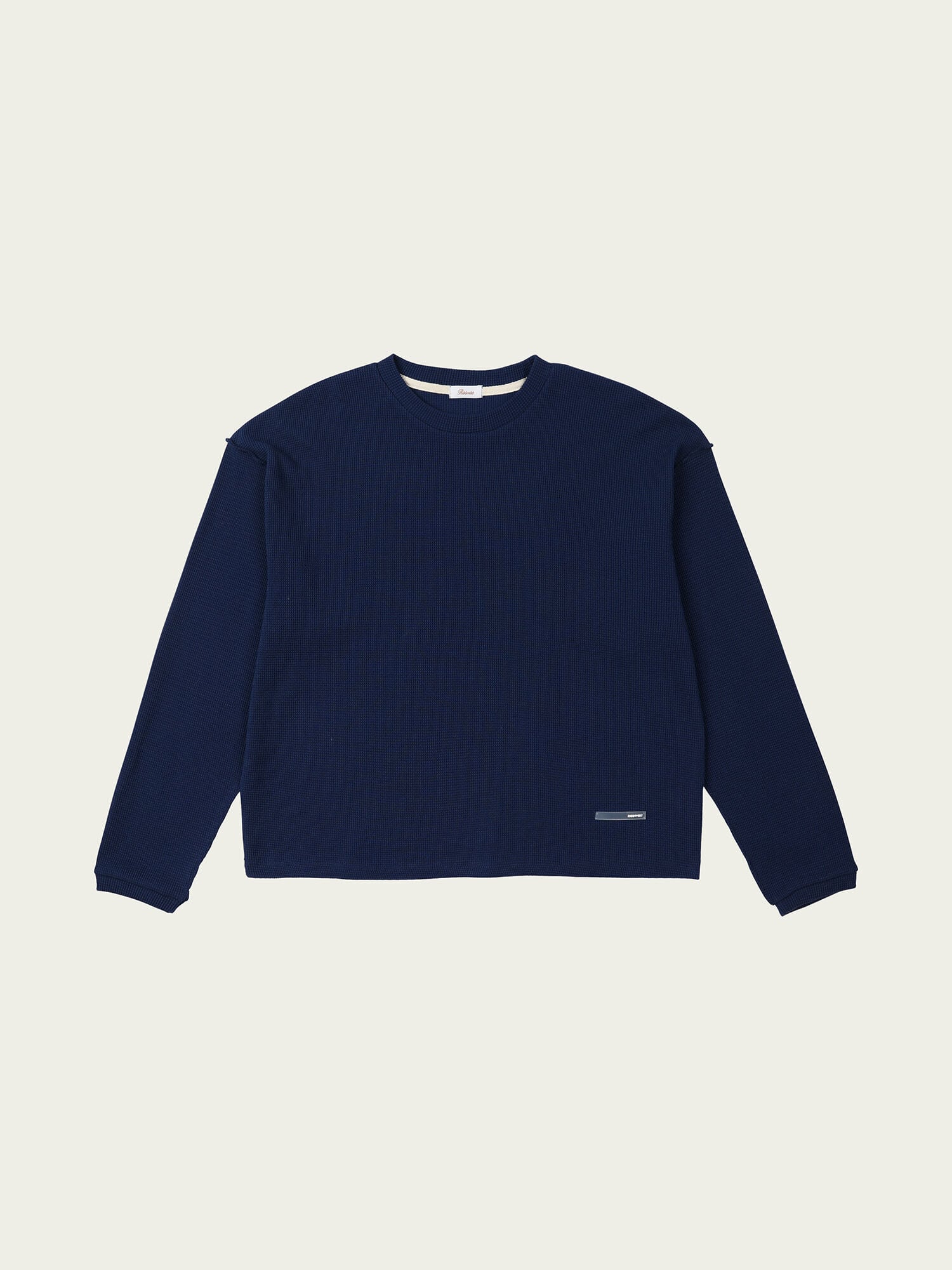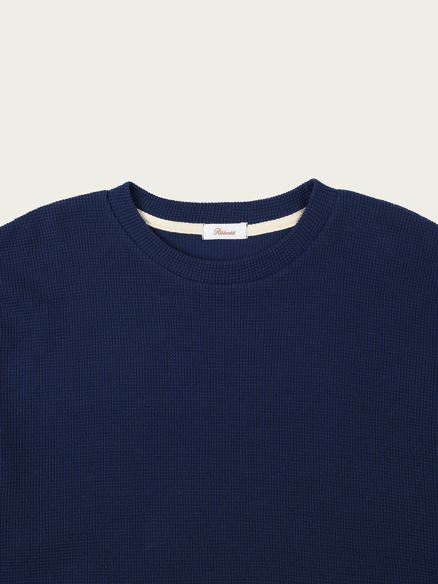 [RIBBONBIT] Grid Waffle Tee - Navy