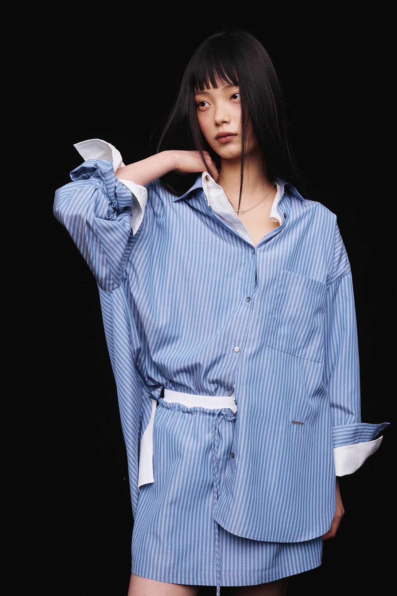 [RIBBONBIT] Jace Striped Shirt - Blue 正規品 韓国ブランド 韓国通販 韓国代行 韓国ファッション リボンビット 日本 店舗