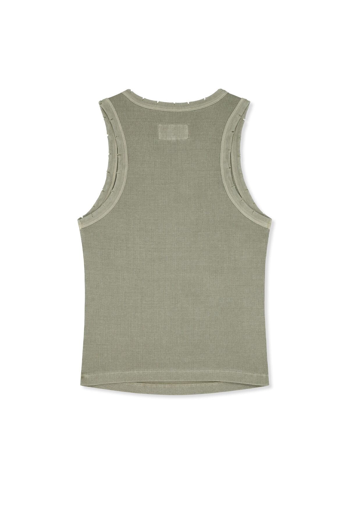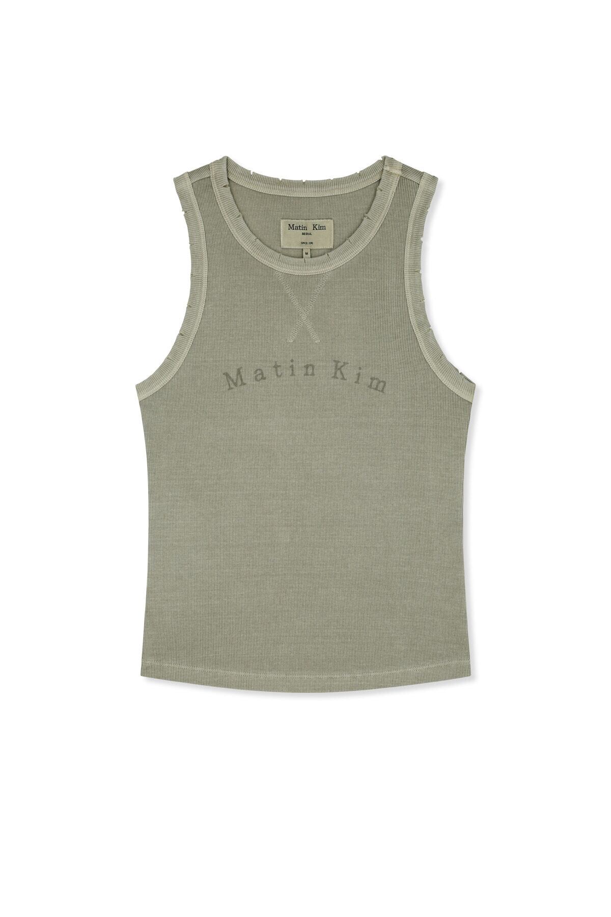 [Matin Kim] DISTRESSED SLEEVELESS LOGO TOP IN BEIGE