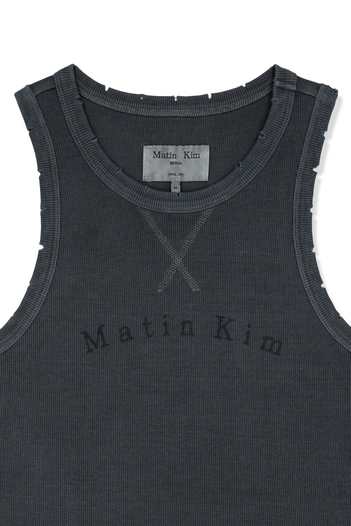 [Matin Kim] DISTRESSED SLEEVELESS LOGO TOP IN CHARCOAL 正規品 韓国ブランド 韓国通販 韓国代行 韓国ファッション マーティンキム matinkim 日本 店舗
