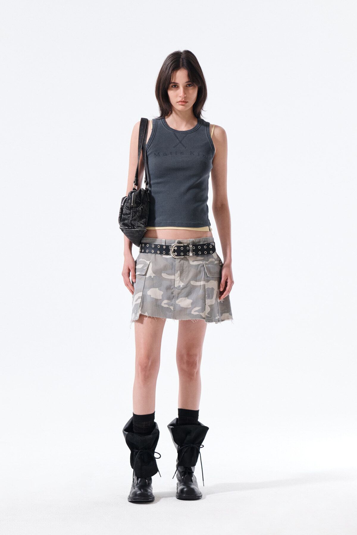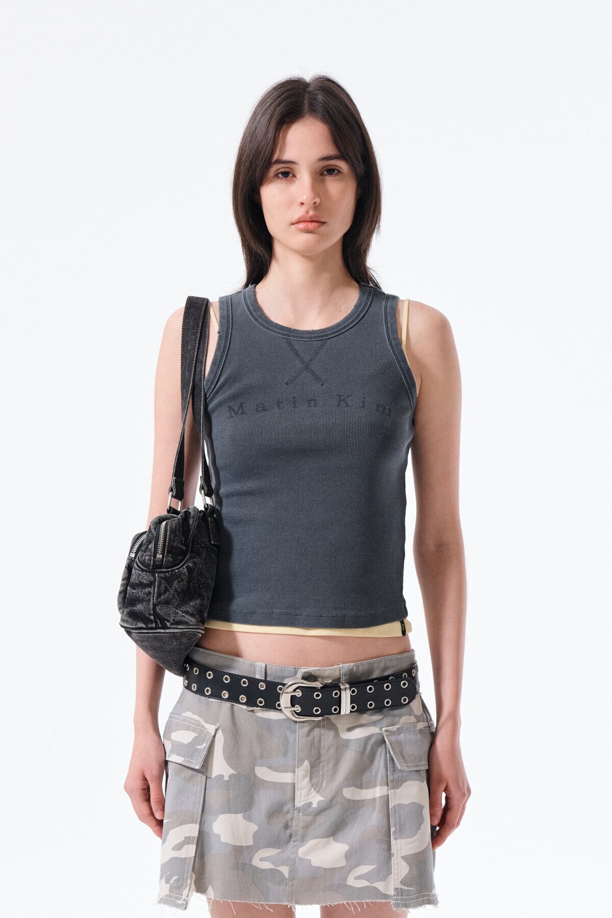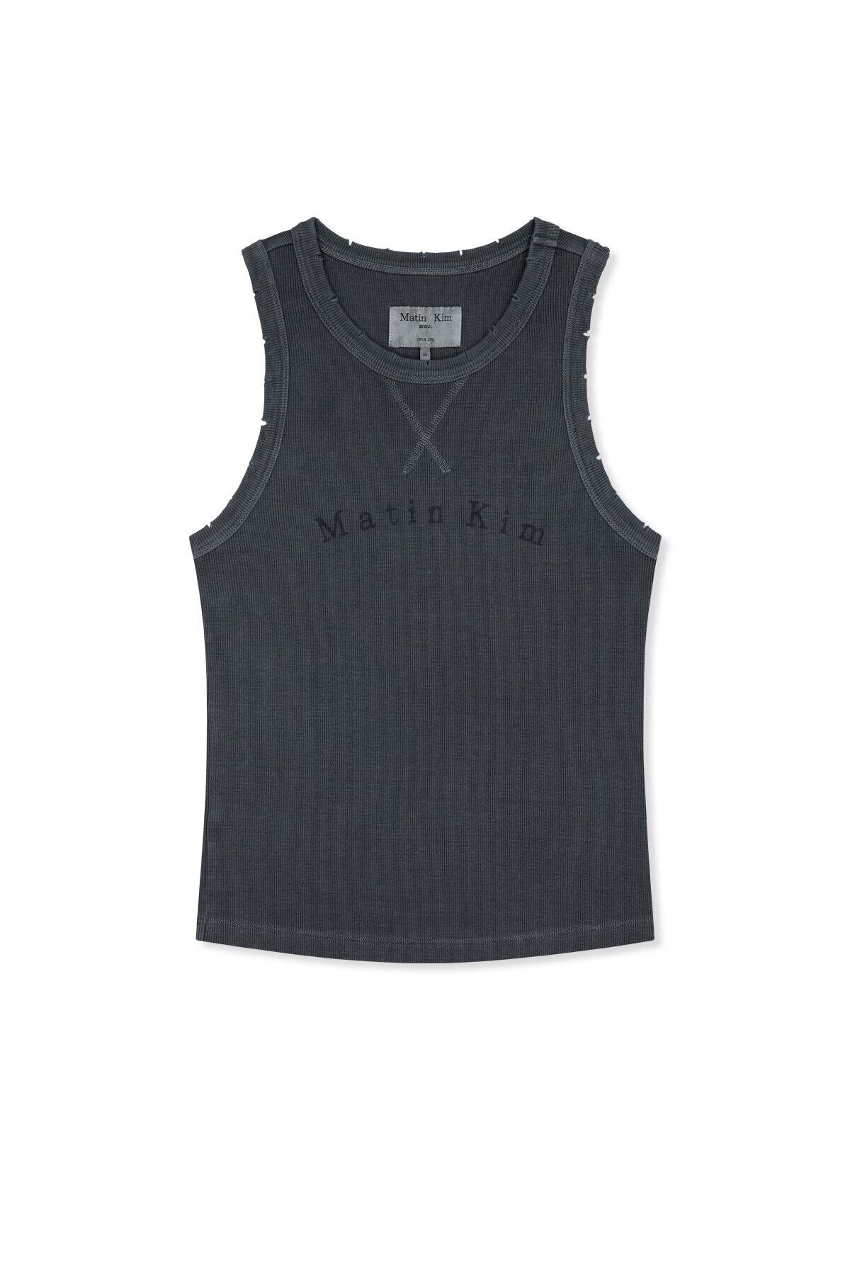 [Matin Kim] DISTRESSED SLEEVELESS LOGO TOP IN CHARCOAL
