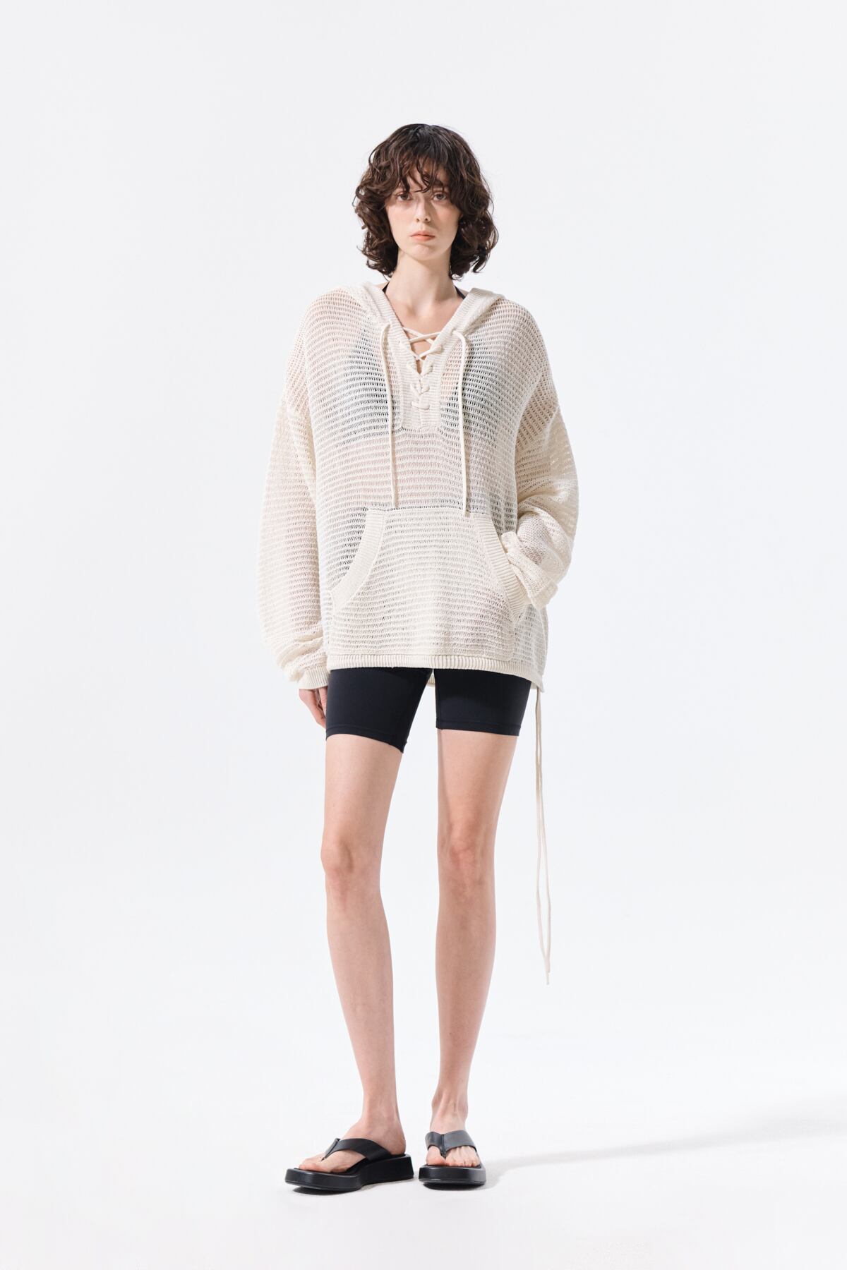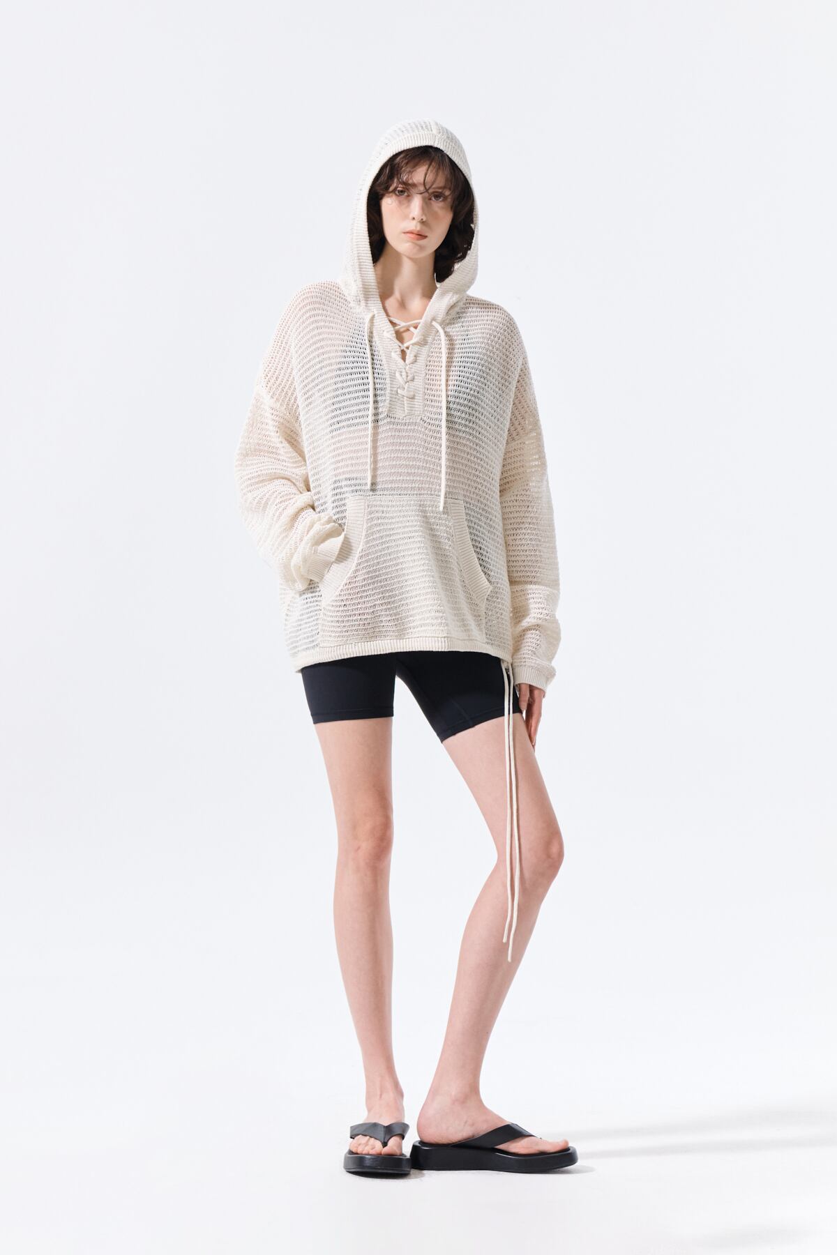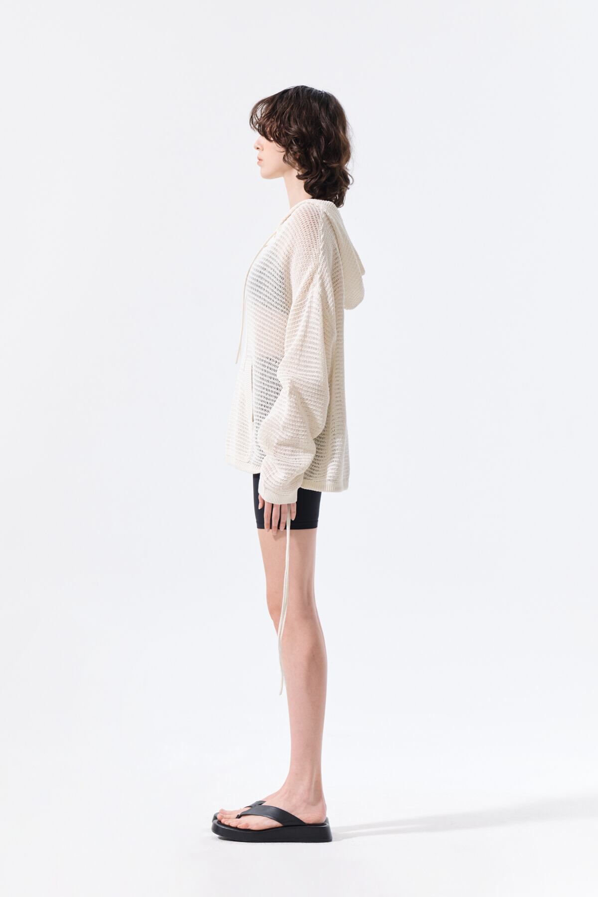 [Matin Kim] OVERSIZED MESH KNIT HOODIE IN CREAM