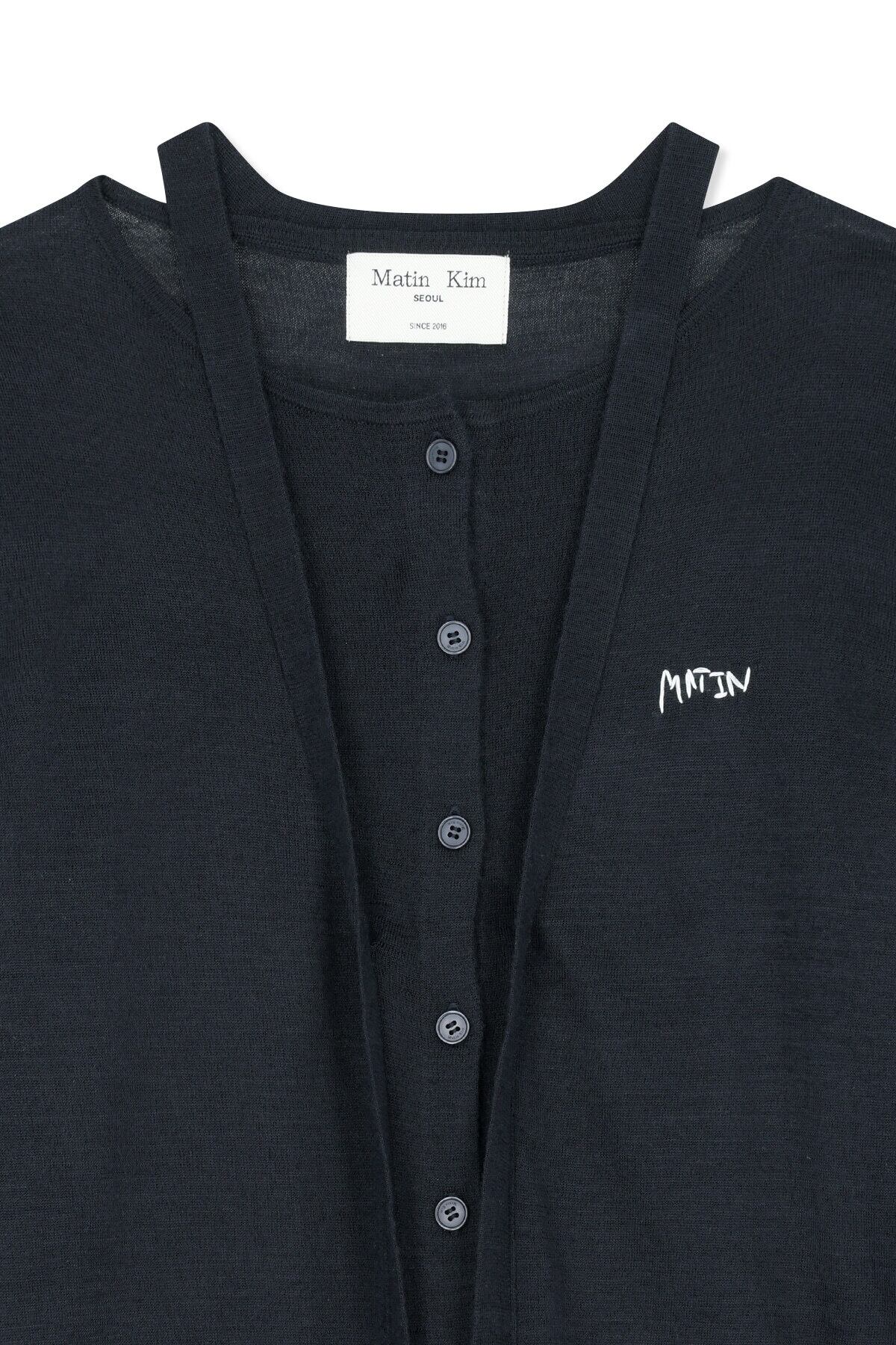 [Matin Kim] STRING DETAIL KNIT CARDIGAN IN DARK NAVY
