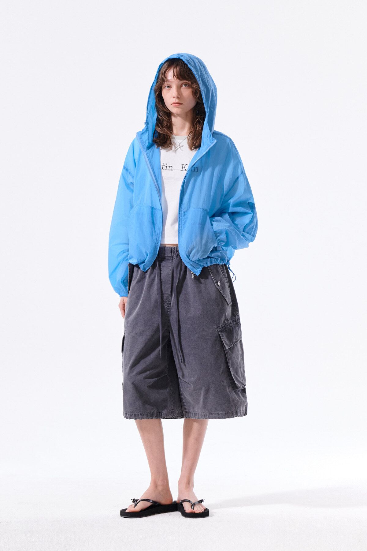 [Matin Kim] BACK LOGO HOODY WINDBREAKER FOR WOMEN IN BLUE