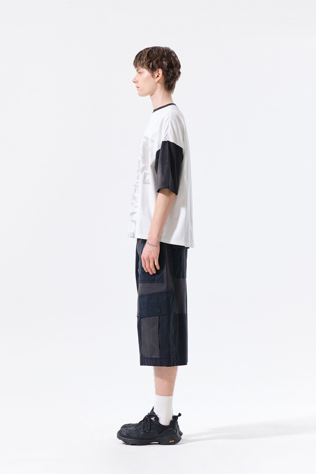 4/20発送 [Matin Kim] PATCHWORK CARGO BERMUDA PANTS FOR MEN IN CHARCOAL 正規品 韓国ブランド 韓国通販 韓国代行 韓国ファッション マーティンキム matinkim 日本 店舗
