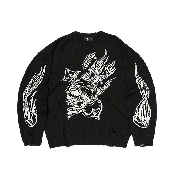 [THUG CLUB] TC CHROME SKULL KNIT SWEATER