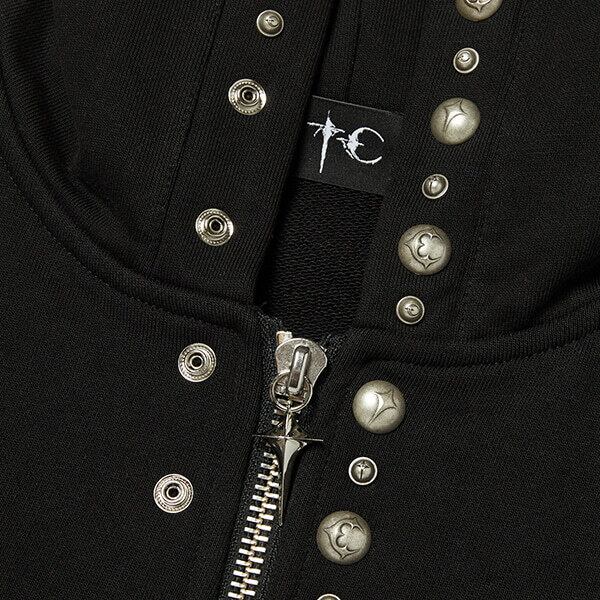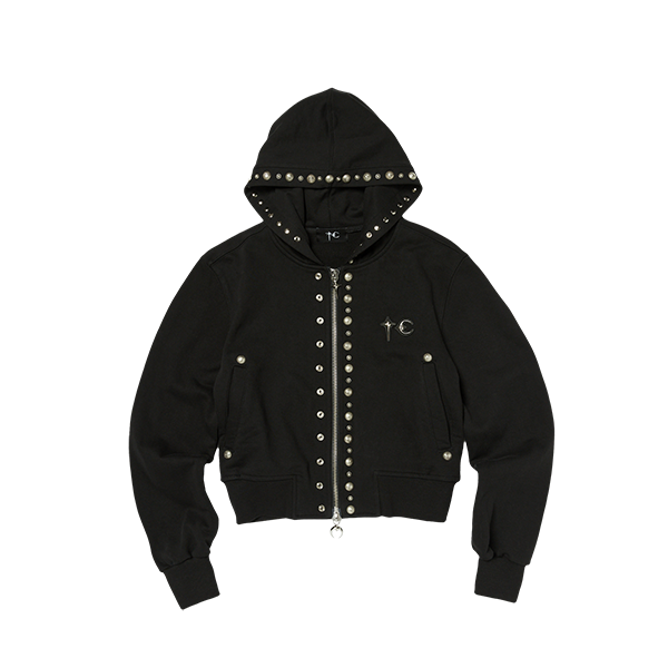 [THUG CLUB] TC STUDDED LINE CROPPED ZIP-UP HOODIE