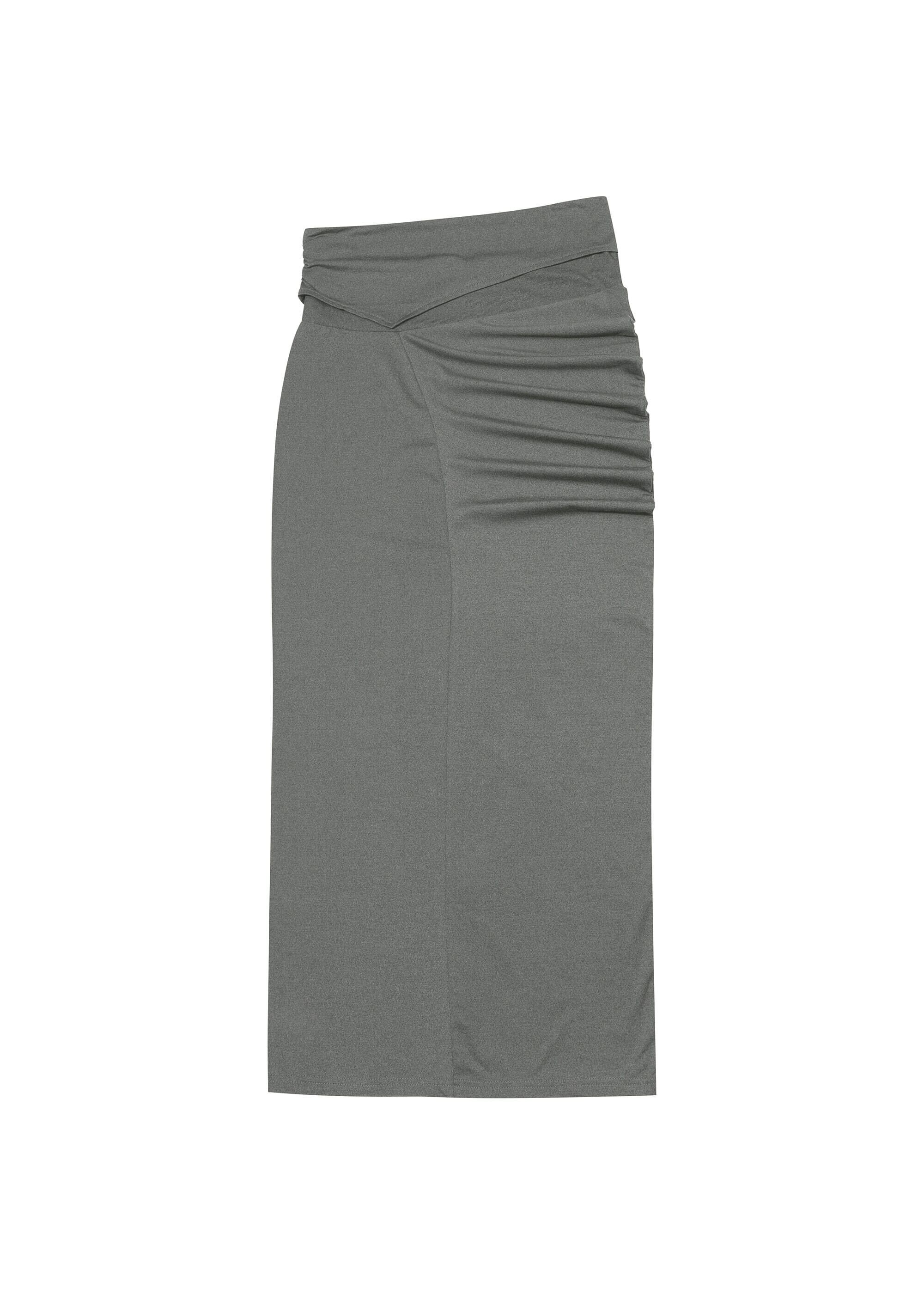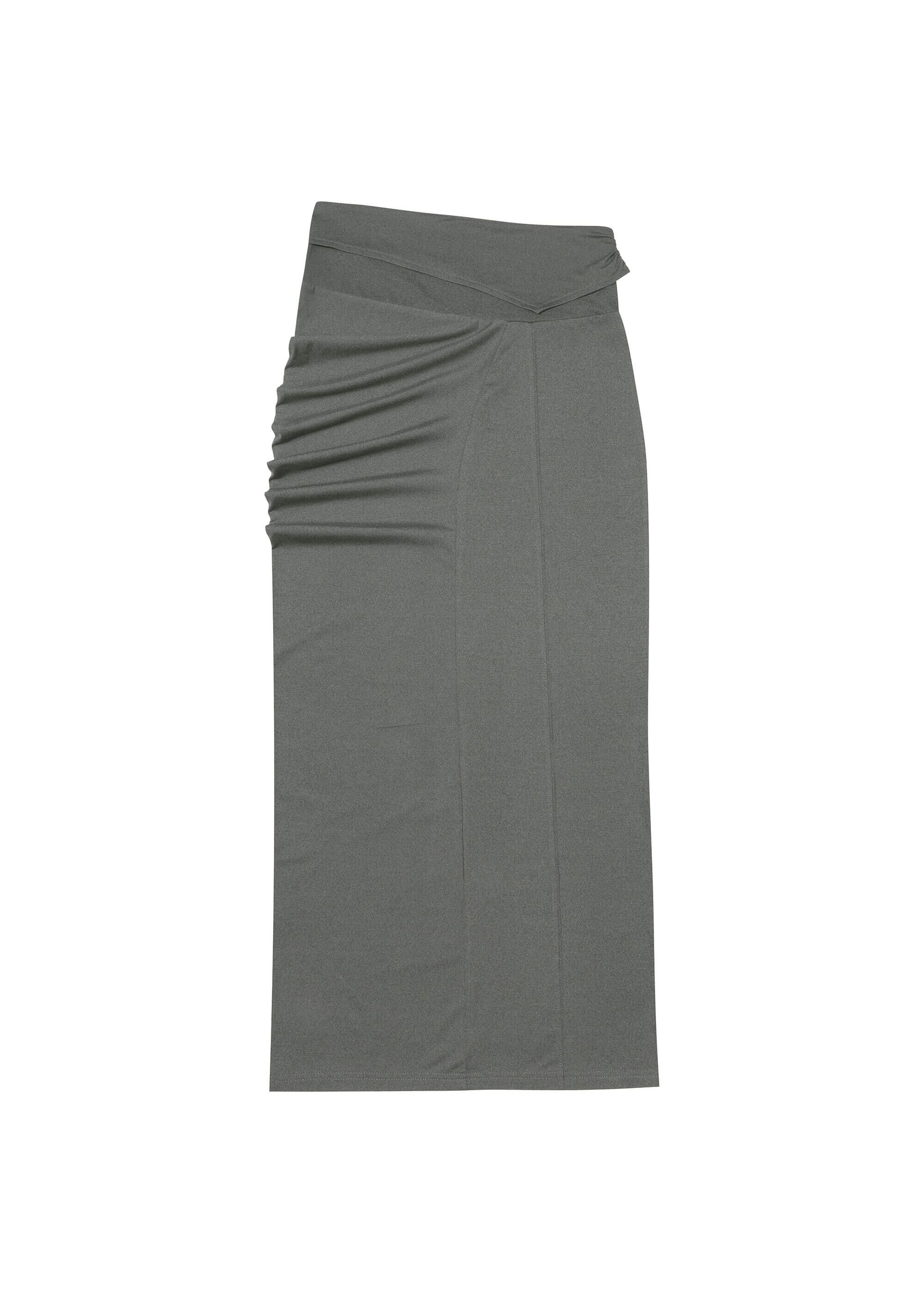 [BOHEMSEO] CURVED LINE DRAPE SKIRT, GRAY 正規品 韓国ブランド 韓国通販 韓国代行 韓国ファッション BOHEMIAN SEOUL ボヘミアンソウル 日本 店舗