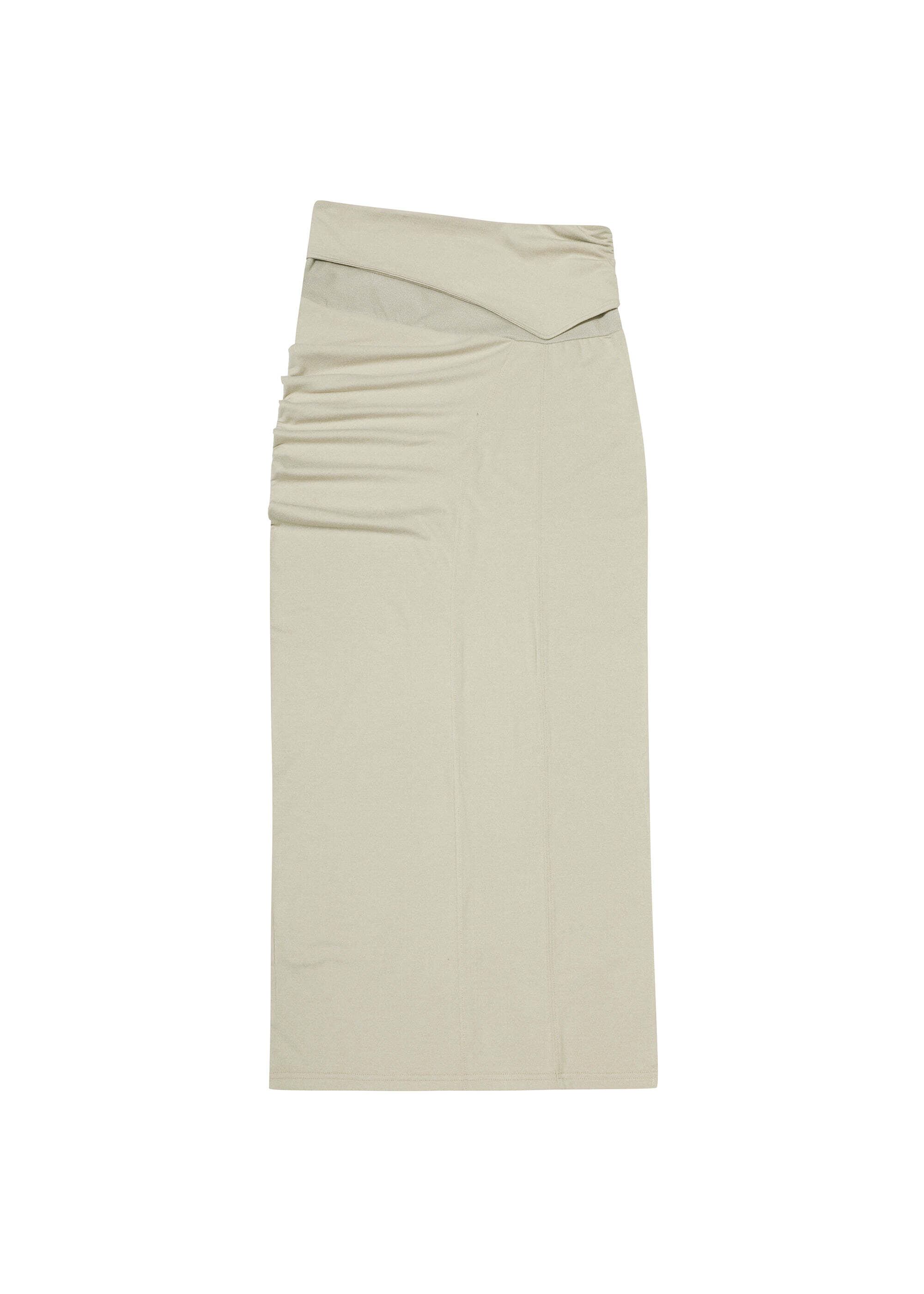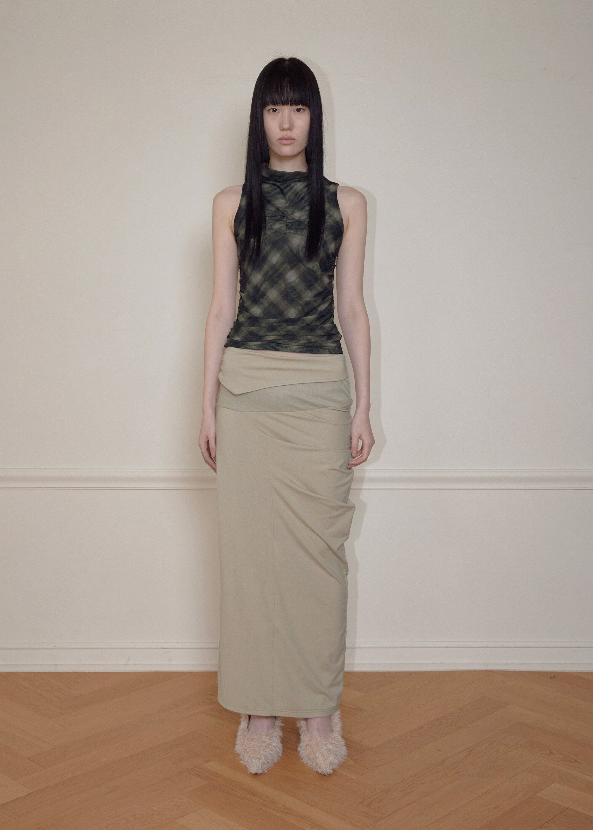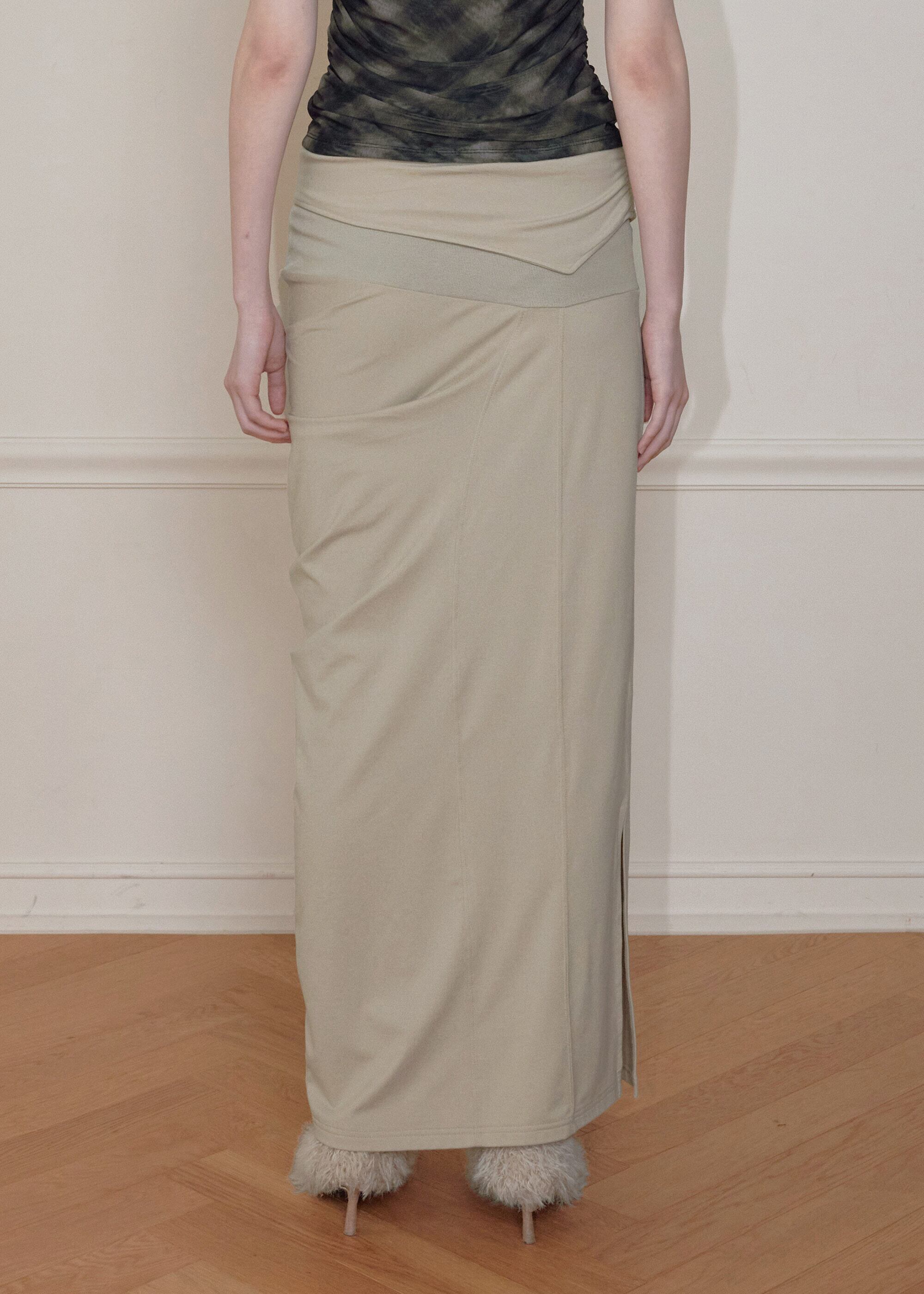 [BOHEMSEO] CURVED LINE DRAPE SKIRT, BEIGE