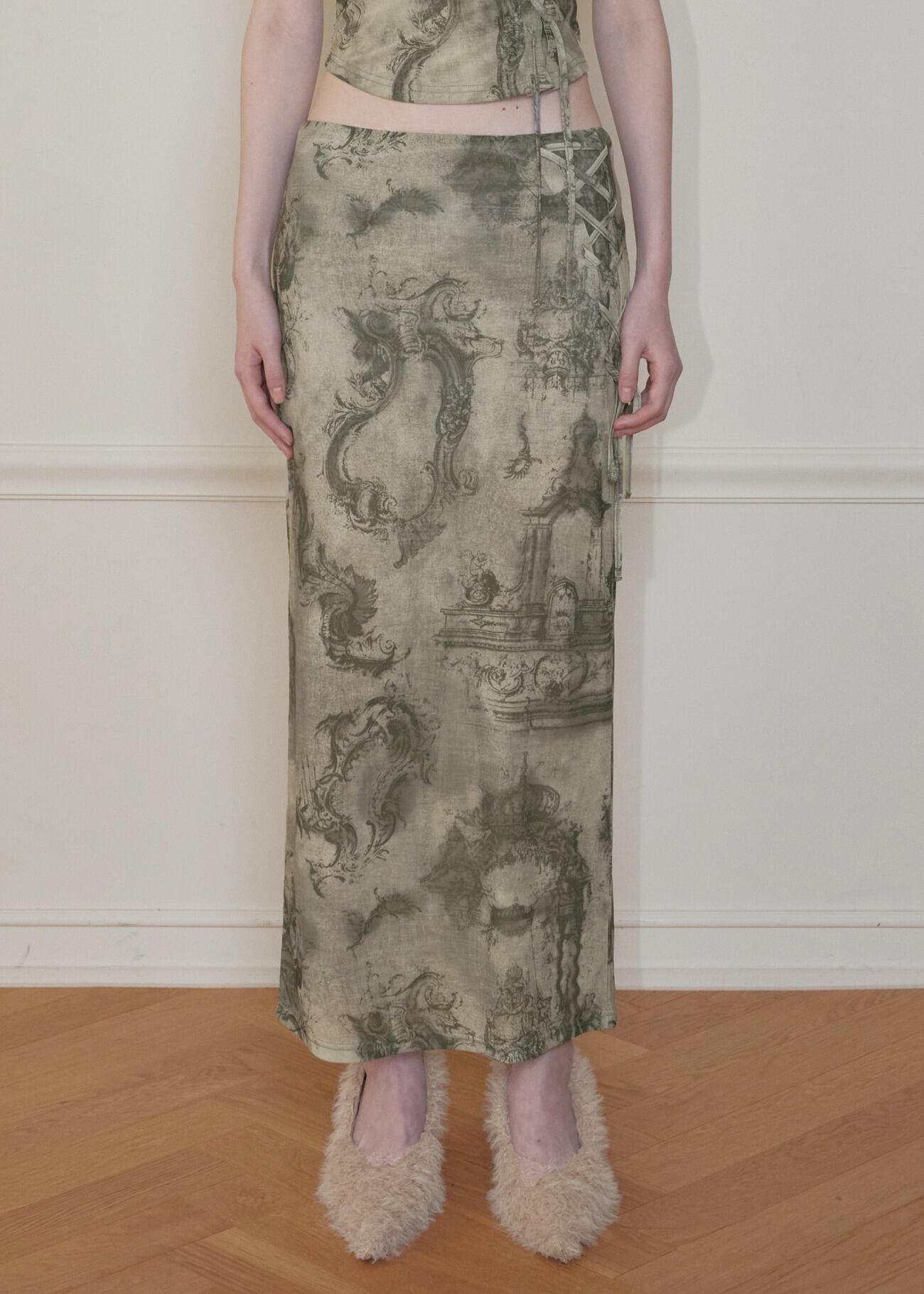 [BOHEMSEO] LACE-UP LONG SKIRT, BEIGE