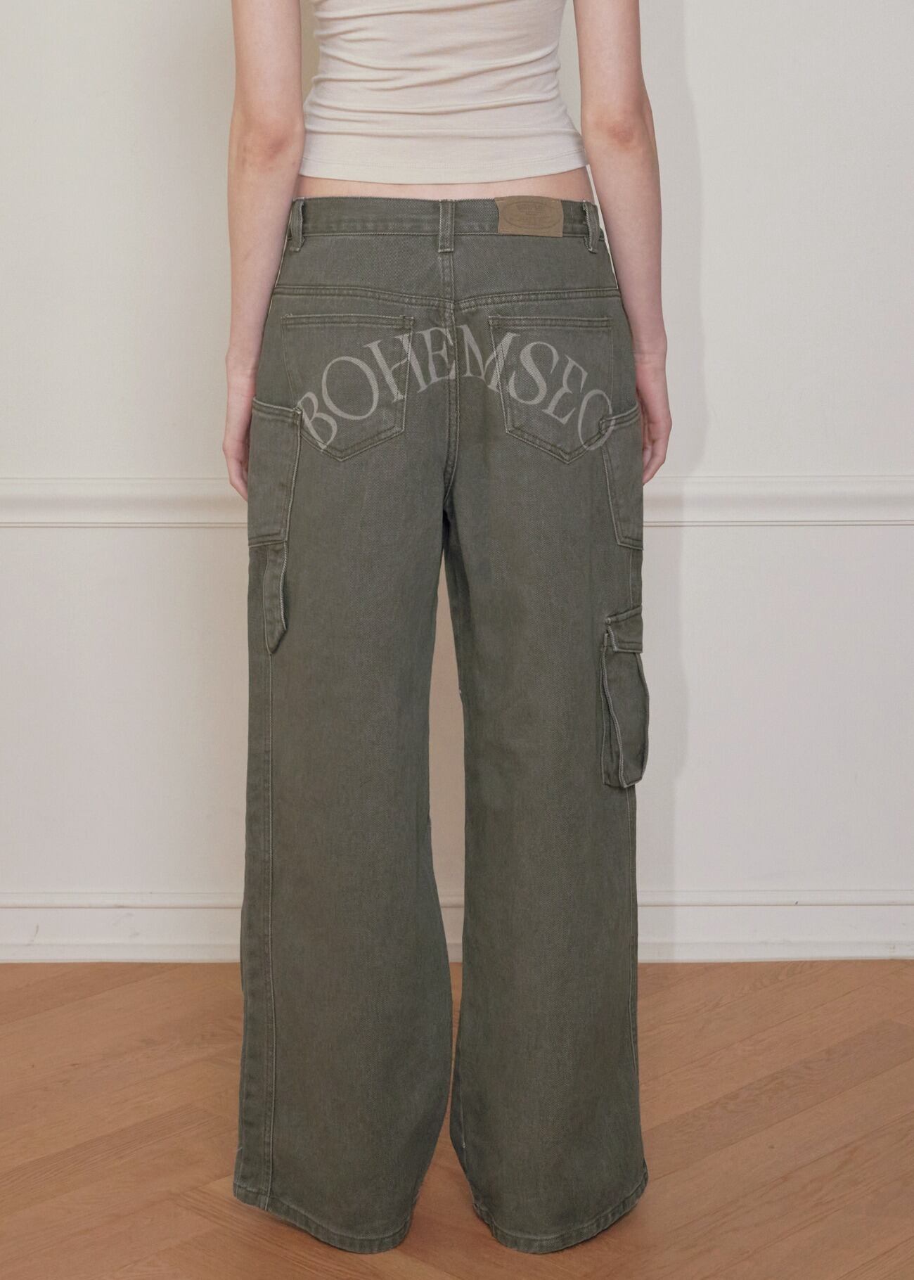 [BOHEMSEO] LASER LOGO CARGO WIDE PANTS, BROWN 正規品 韓国ブランド 韓国通販 韓国代行 韓国ファッション BOHEMIAN SEOUL ボヘミアンソウル 日本 店舗