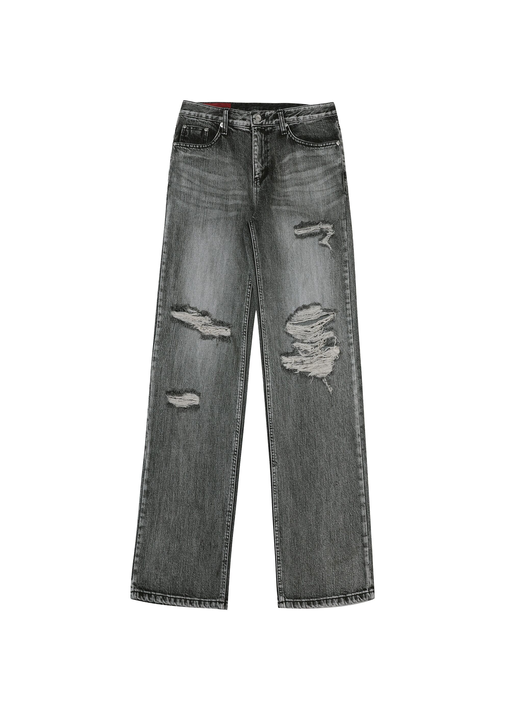 [BOHEMSEO] HIGHLIGHT DAMAGE WIDE PANTS, GRAY