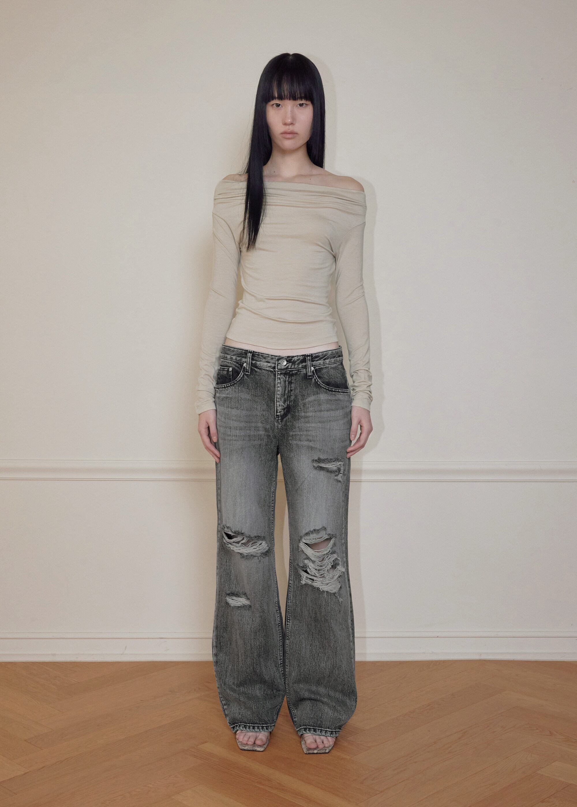 5/7発送 [BOHEMSEO] HIGHLIGHT DAMAGE WIDE PANTS, GRAY 正規品 韓国ブランド 韓国通販 韓国代行 韓国ファッション BOHEMIAN SEOUL ボヘミアンソウル 日本 店舗
