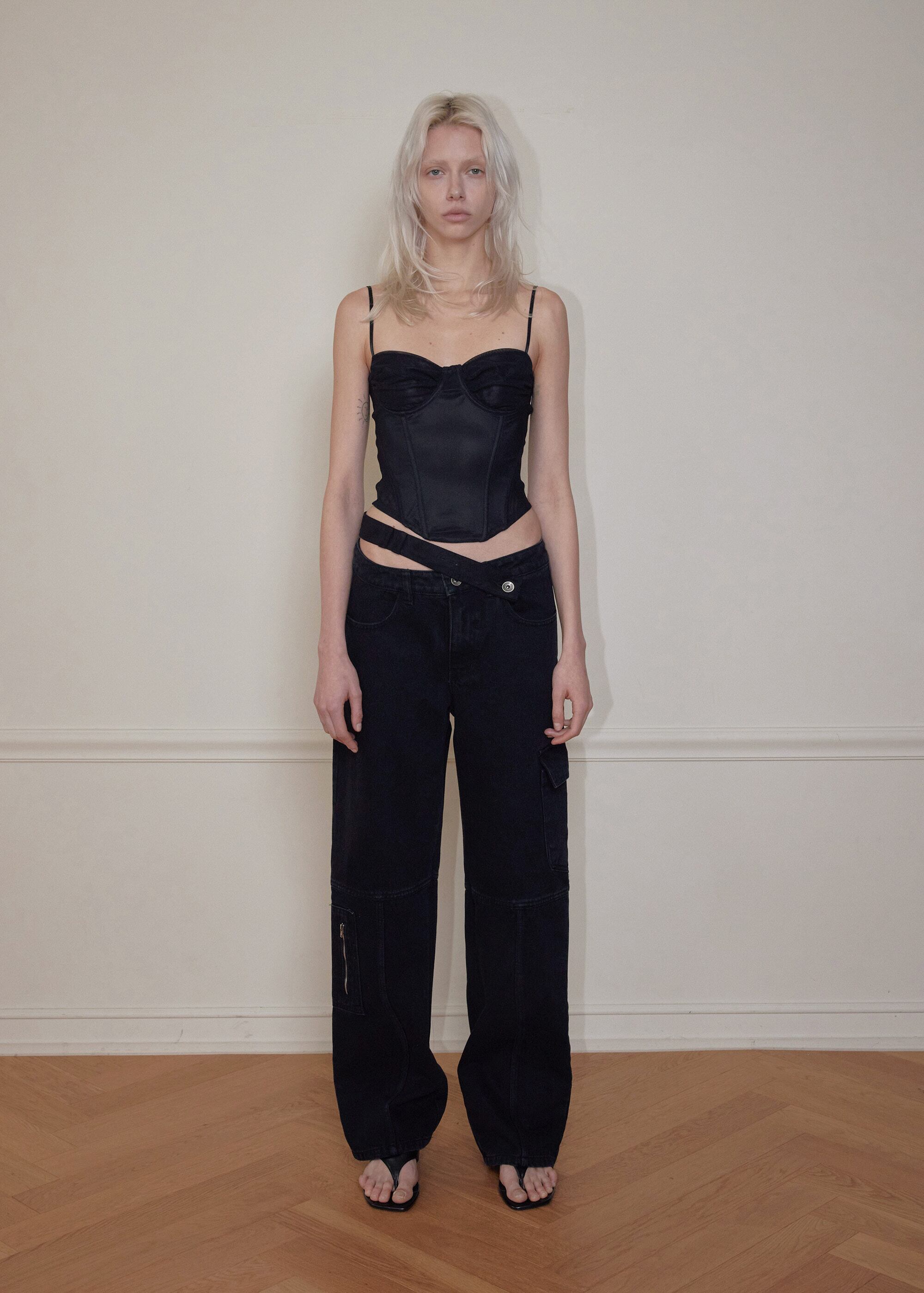 [BOHEMSEO] CROSS WAIST WIDE PANTS, BLACK 正規品 韓国ブランド 韓国通販 韓国代行 韓国ファッション BOHEMIAN SEOUL ボヘミアンソウル 日本 店舗