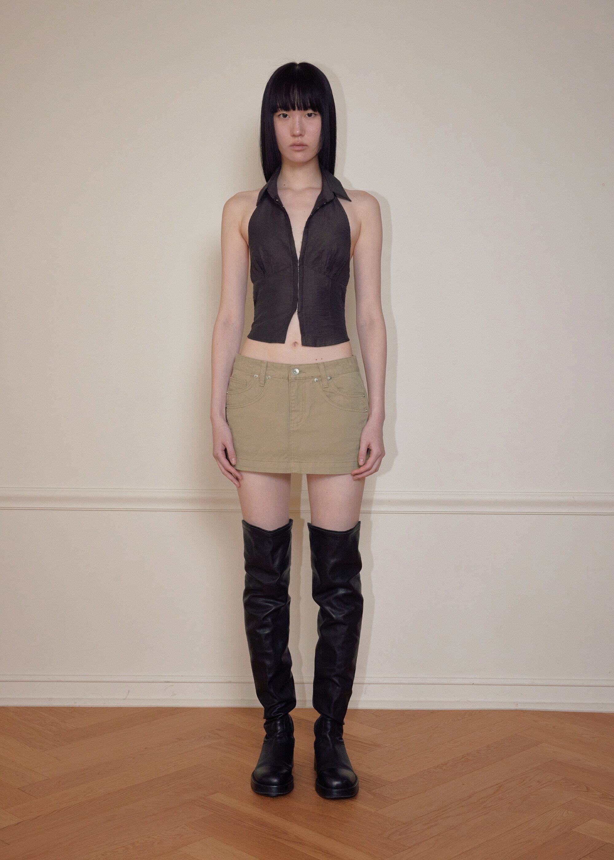 [BOHEMSEO] DOUBLE POCKET MINI SKIRT, BEIGE
