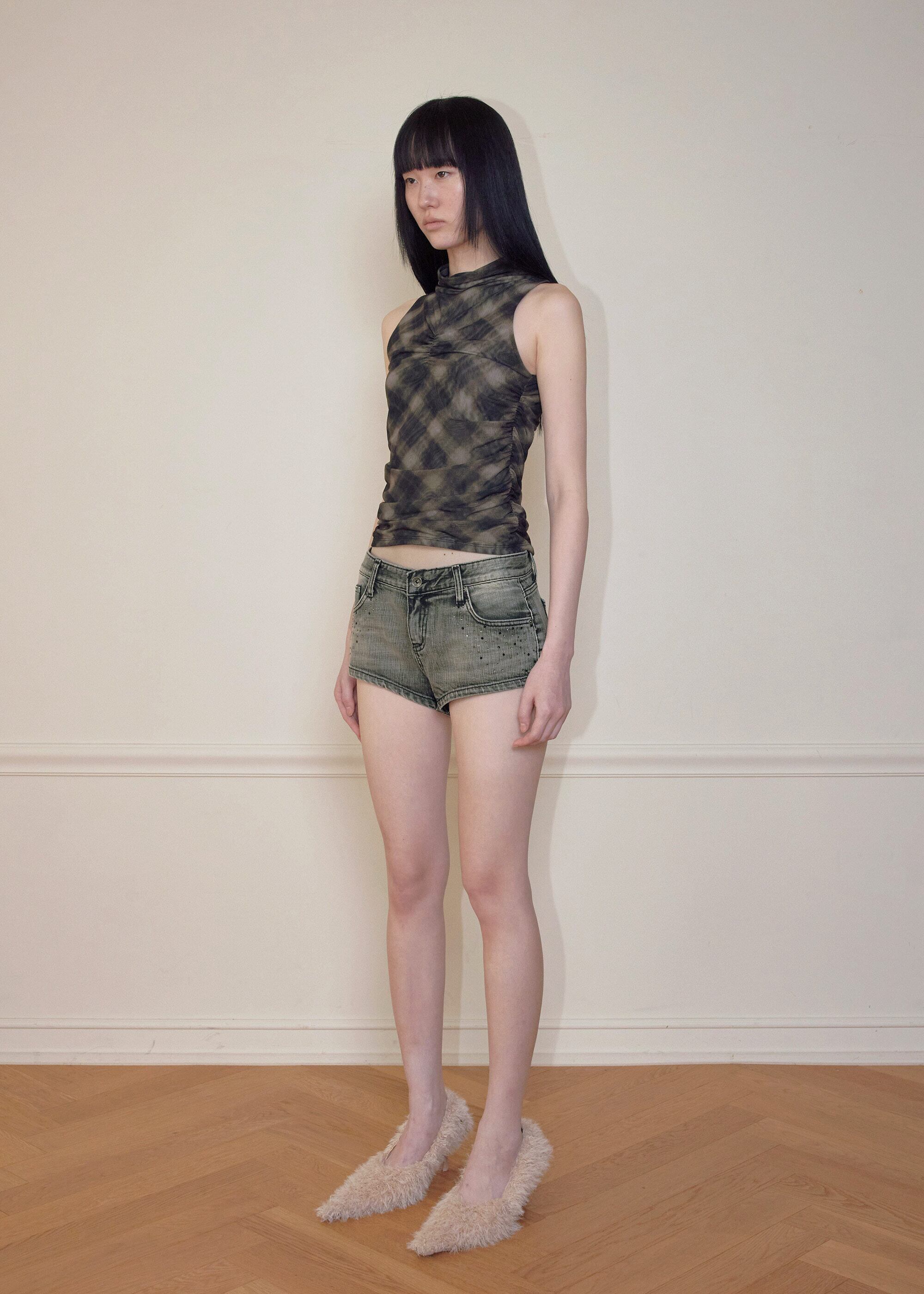 [BOHEMSEO] JEWEL DENIM SHORTS, GRAY