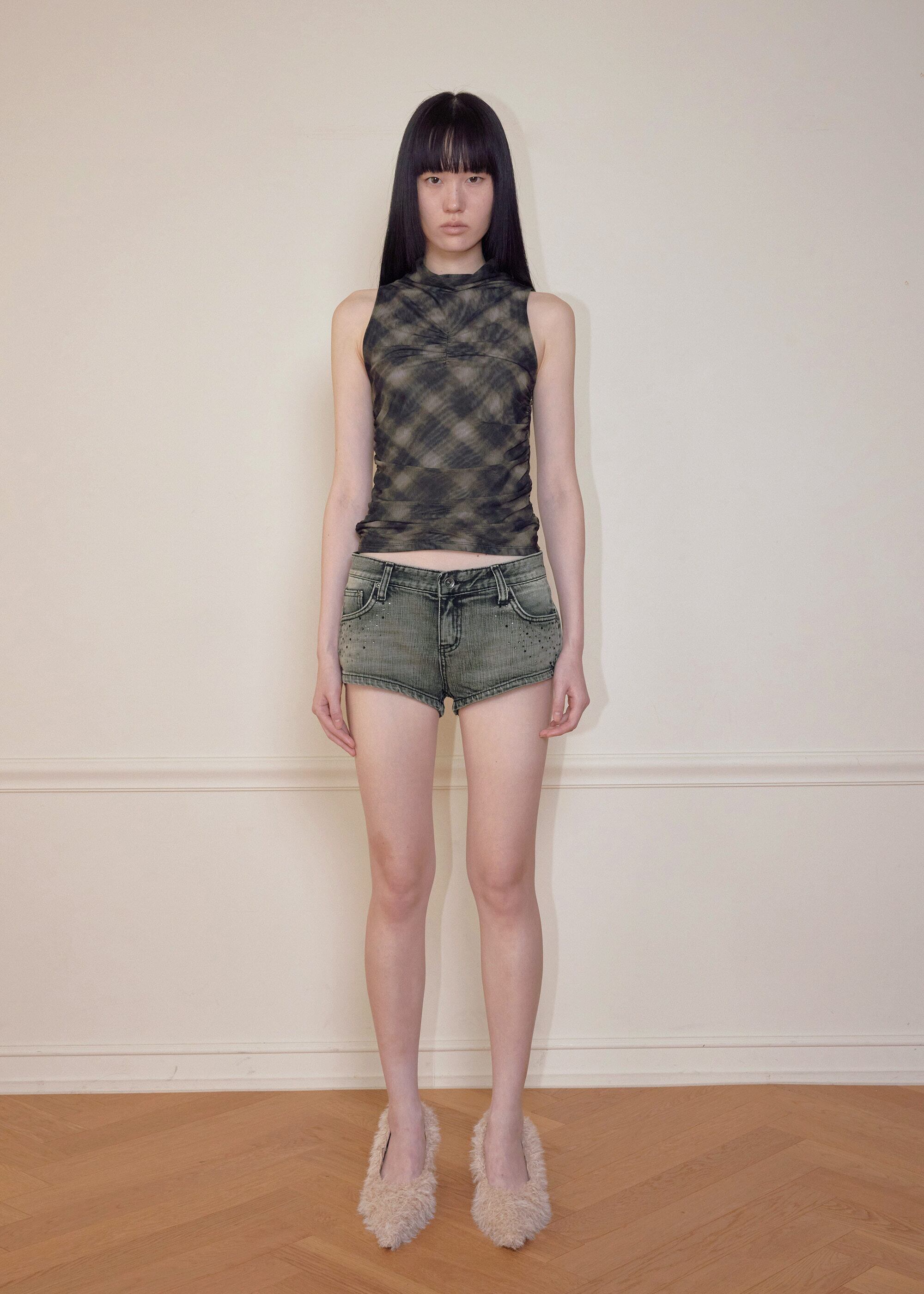 [BOHEMSEO] JEWEL DENIM SHORTS, GRAY 正規品 韓国ブランド 韓国通販 韓国代行 韓国ファッション BOHEMIAN SEOUL ボヘミアンソウル 日本 店舗