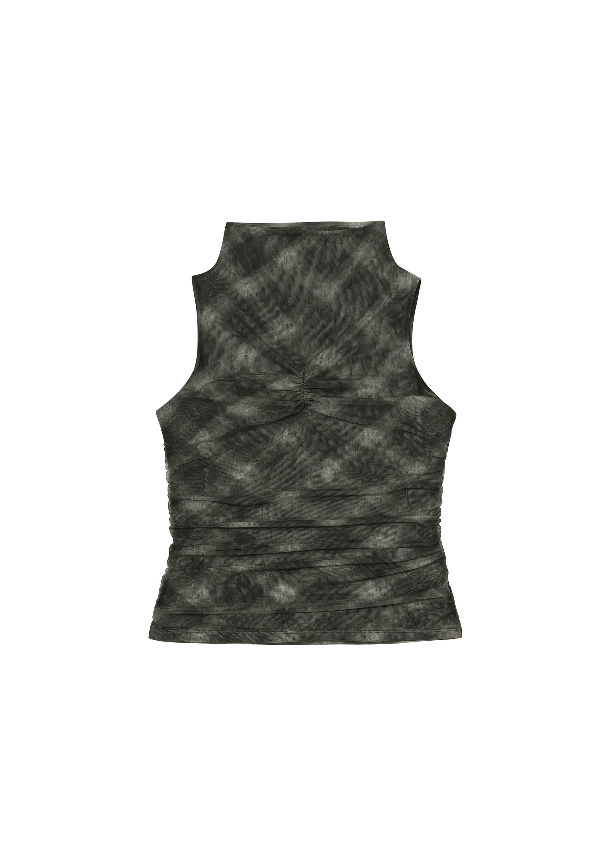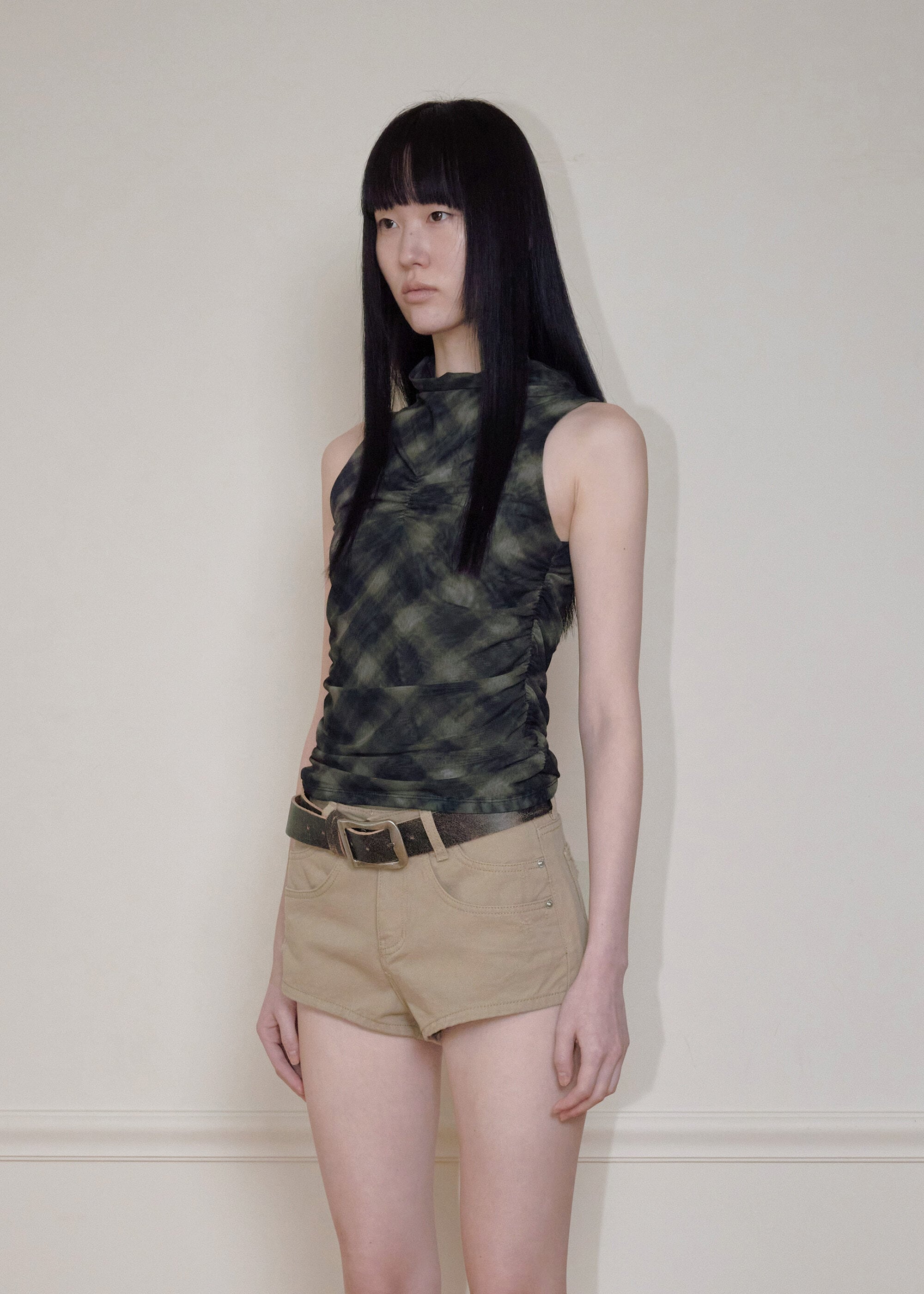 [BOHEMSEO] HALF NECK SHIRRING SLEEVELESS, CHECK