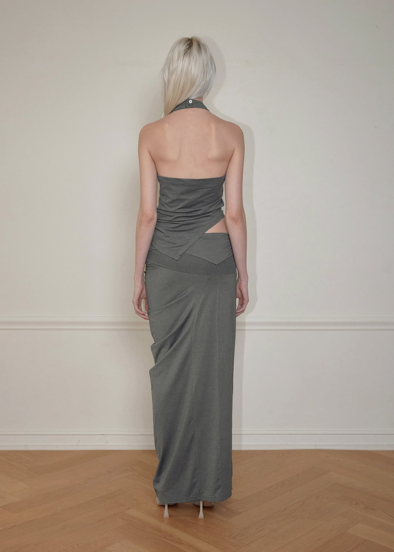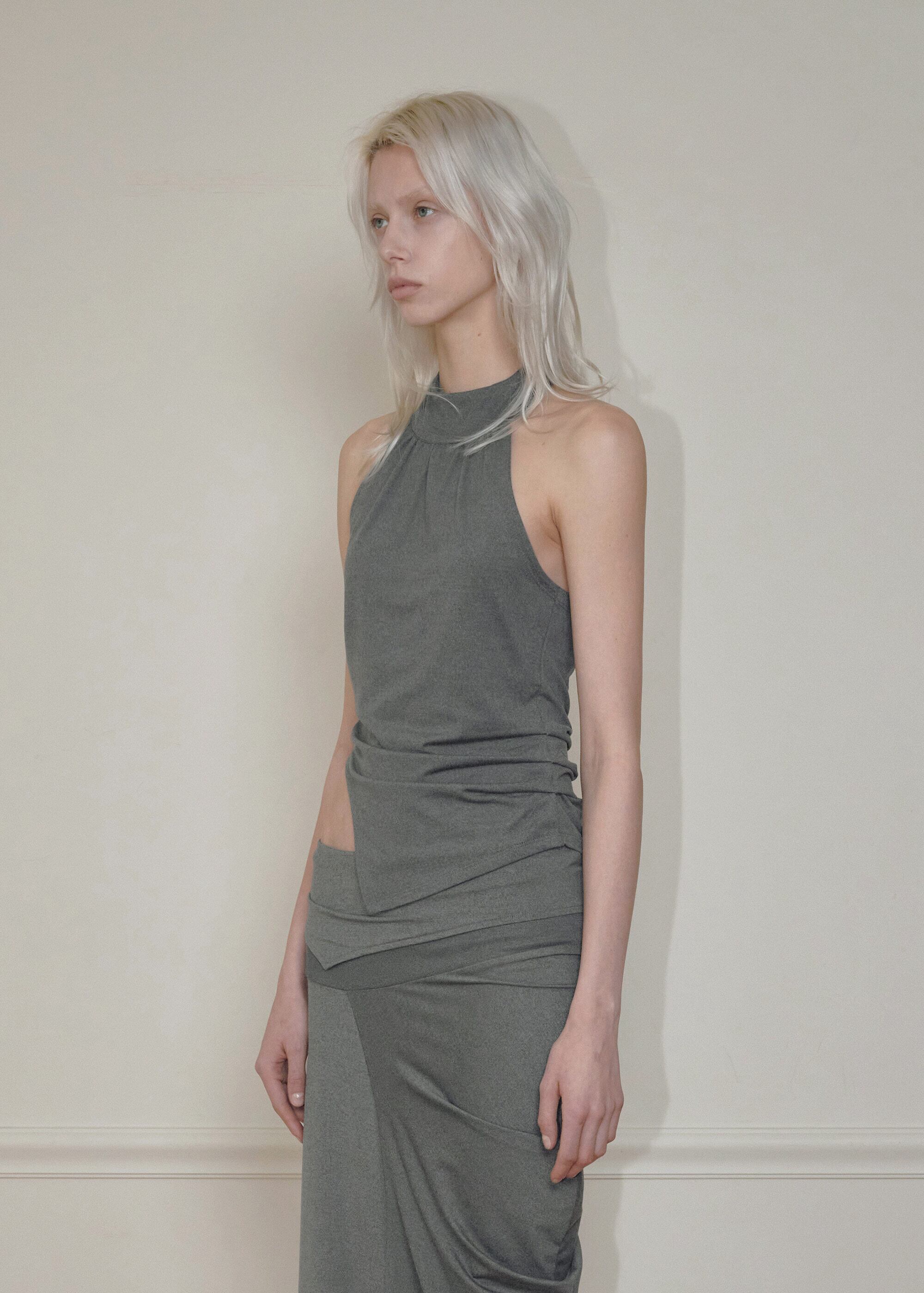 [BOHEMSEO] CURVED LINE DRAPE TOP, GRAY