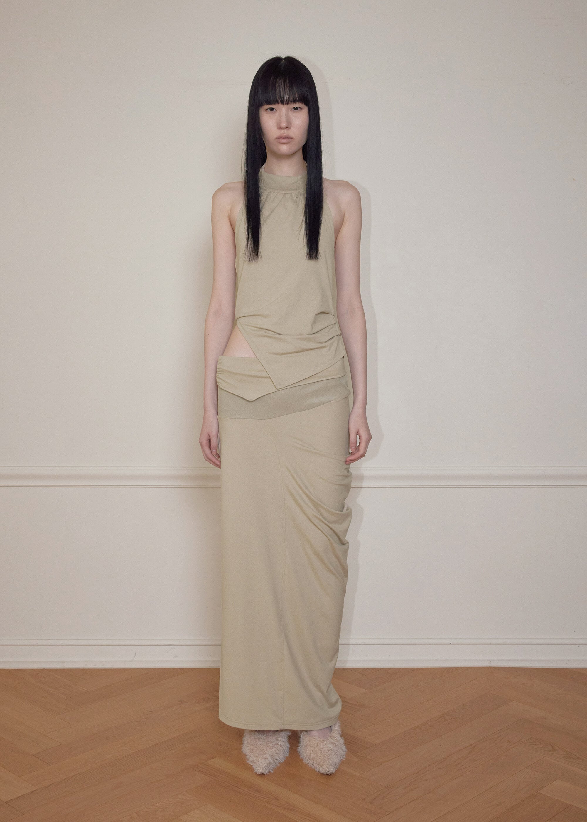 [BOHEMSEO] CURVED LINE DRAPE TOP, BEIGE 正規品 韓国ブランド 韓国通販 韓国代行 韓国ファッション BOHEMIAN SEOUL ボヘミアンソウル 日本 店舗