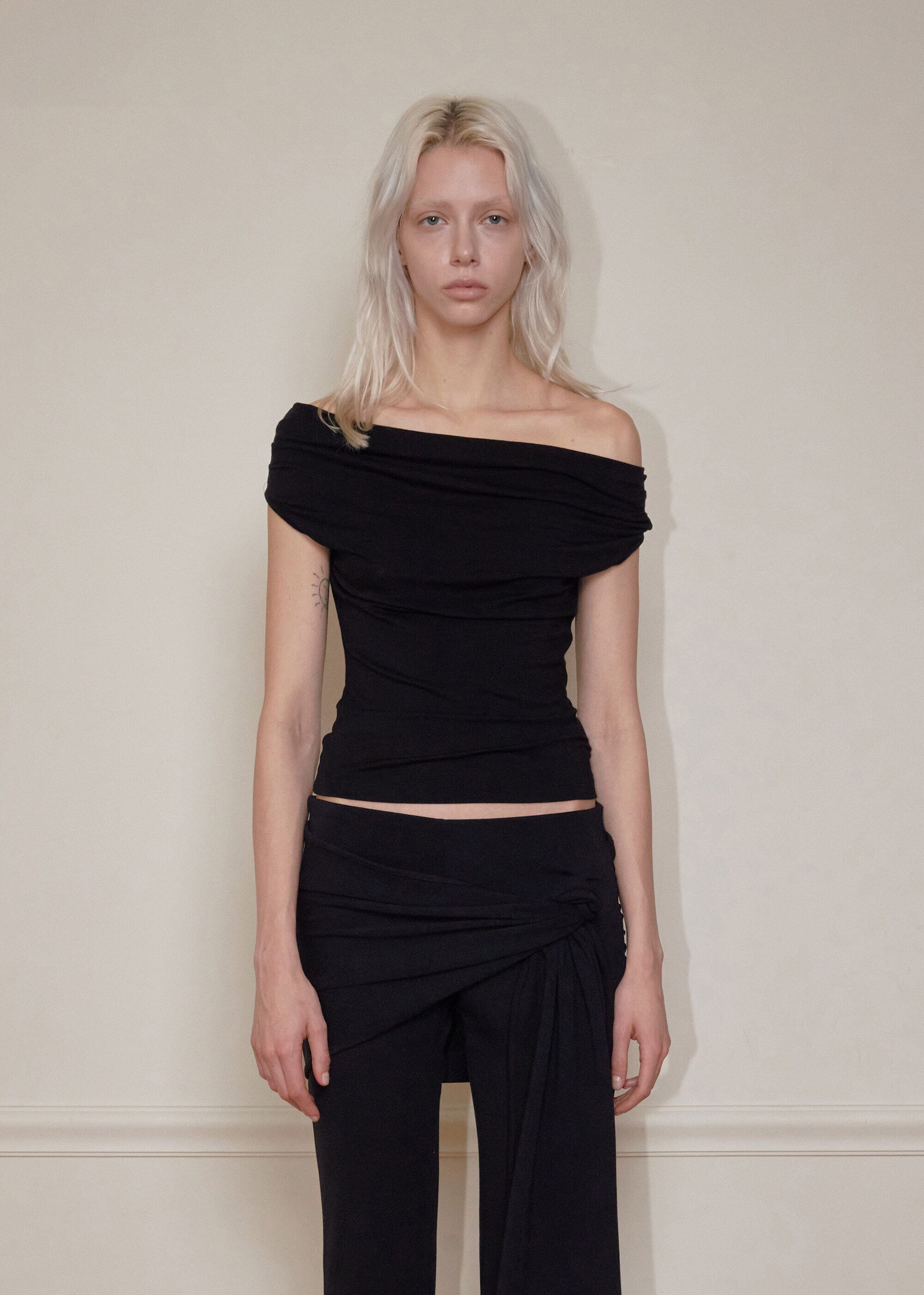 [BOHEMSEO] FLOW NECK DRAPE HALF-T, BLACK 正規品 韓国ブランド 韓国通販 韓国代行 韓国ファッション BOHEMIAN SEOUL ボヘミアンソウル 日本 店舗