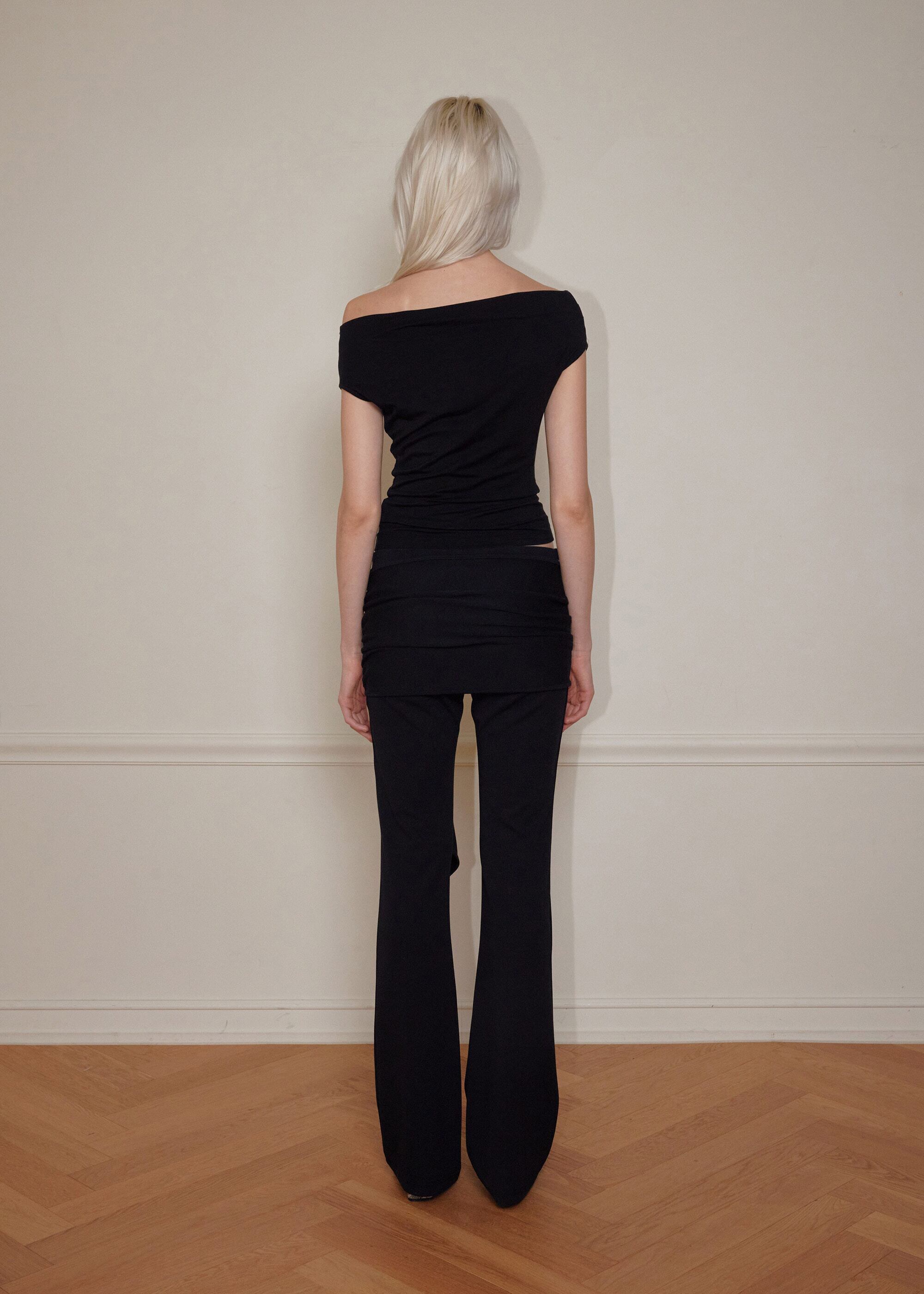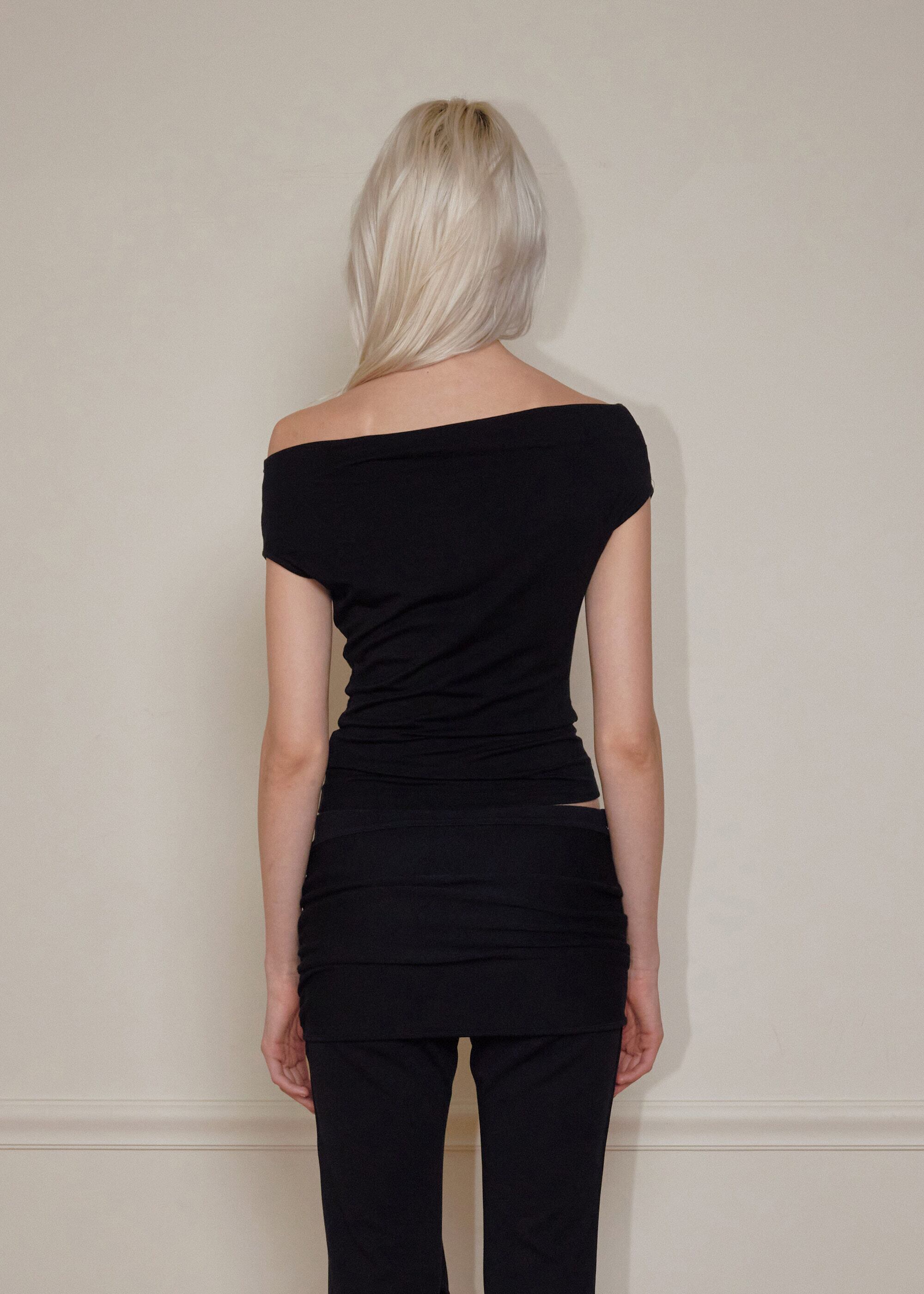 [BOHEMSEO] FLOW NECK DRAPE HALF-T, BLACK