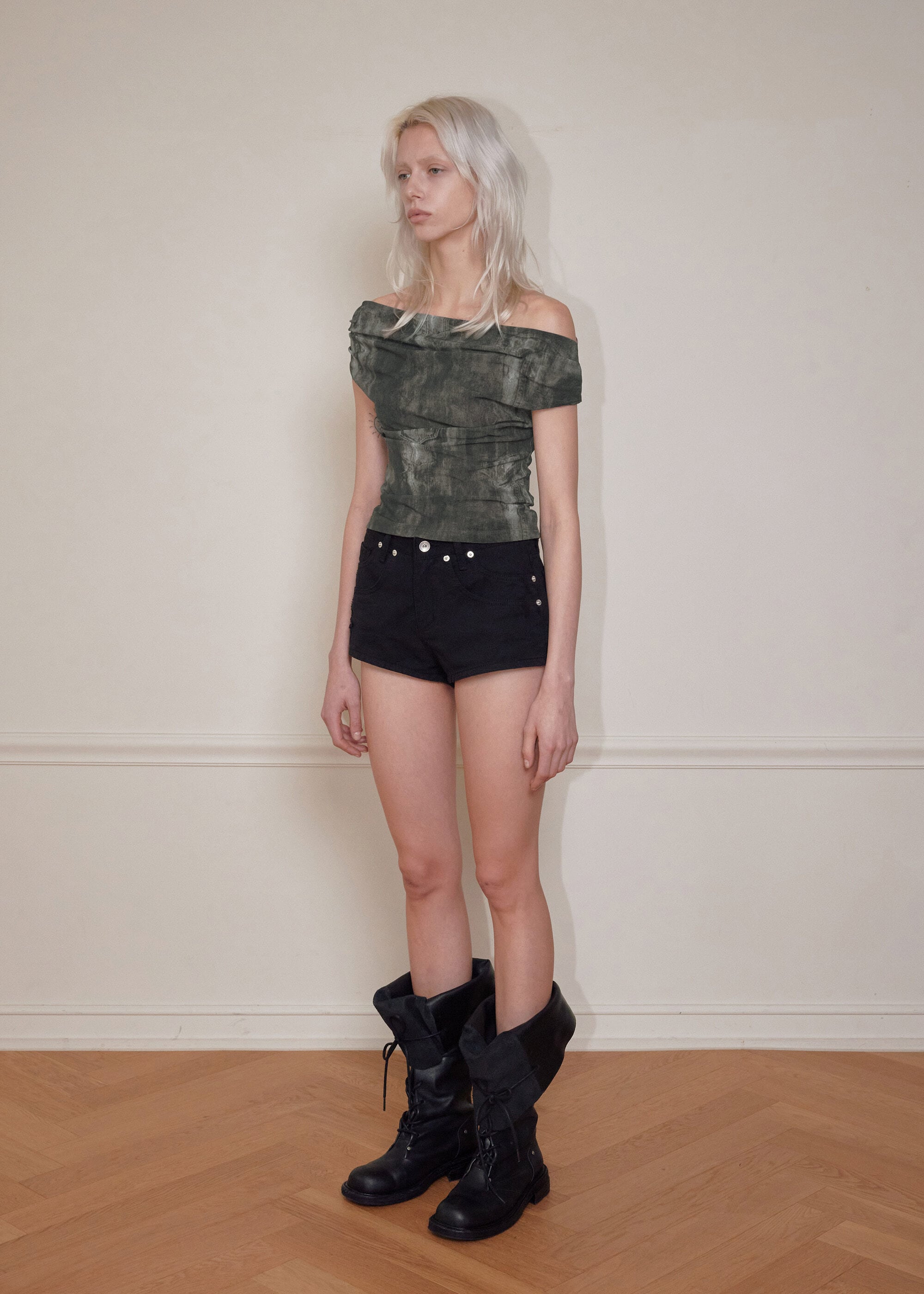 [BOHEMSEO] FLOW NECK DRAPE HALF-T, BROWN 正規品 韓国ブランド 韓国通販 韓国代行 韓国ファッション BOHEMIAN SEOUL ボヘミアンソウル 日本 店舗
