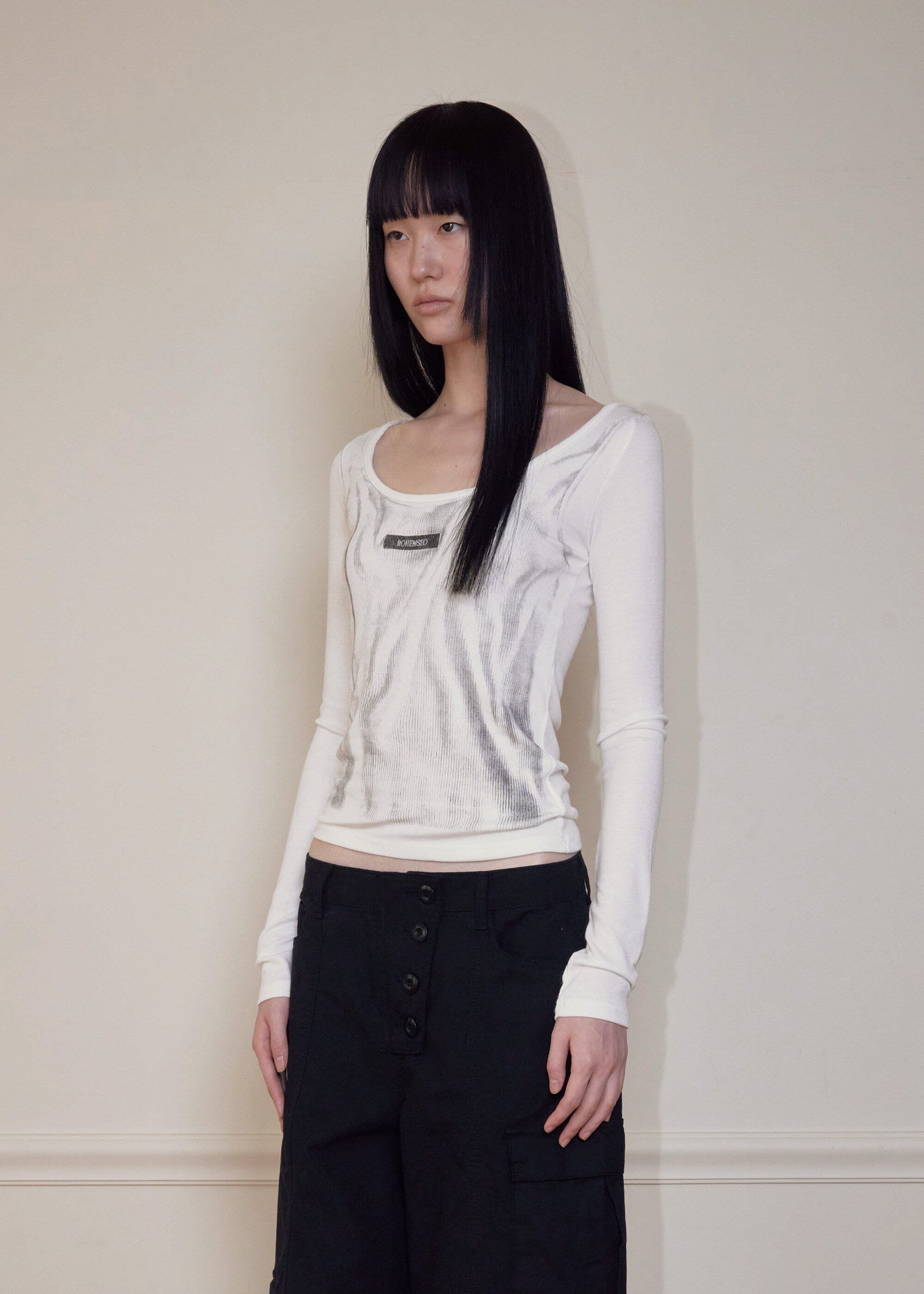 [BOHEMSEO] BOHEMSEO trompe-l'oeil TOP, WHITE