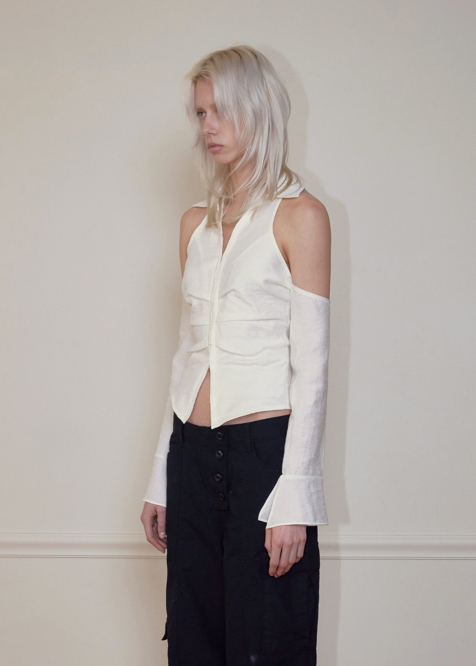 [BOHEMSEO] SHOULDER HOLE COLLAR BLOUSE, IVORY