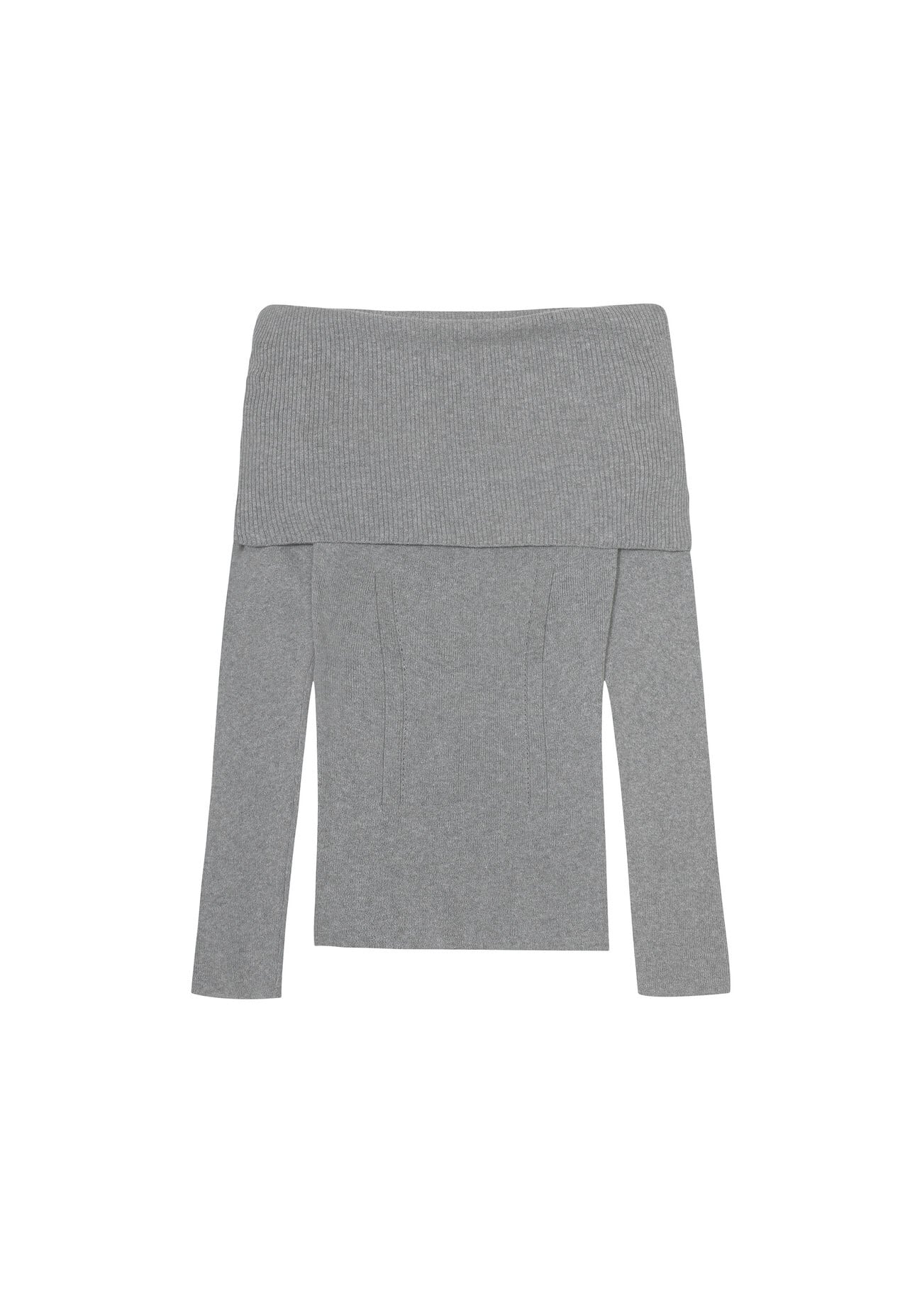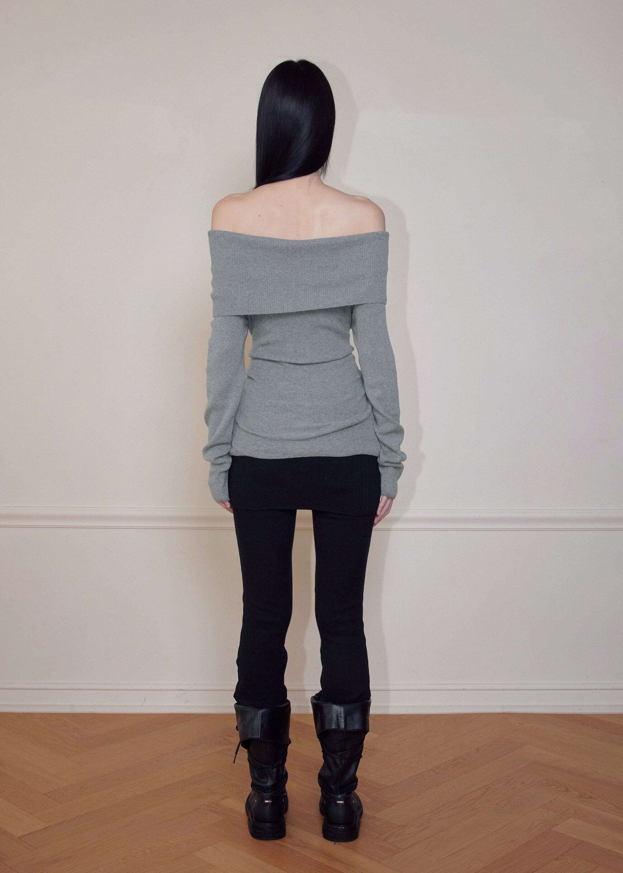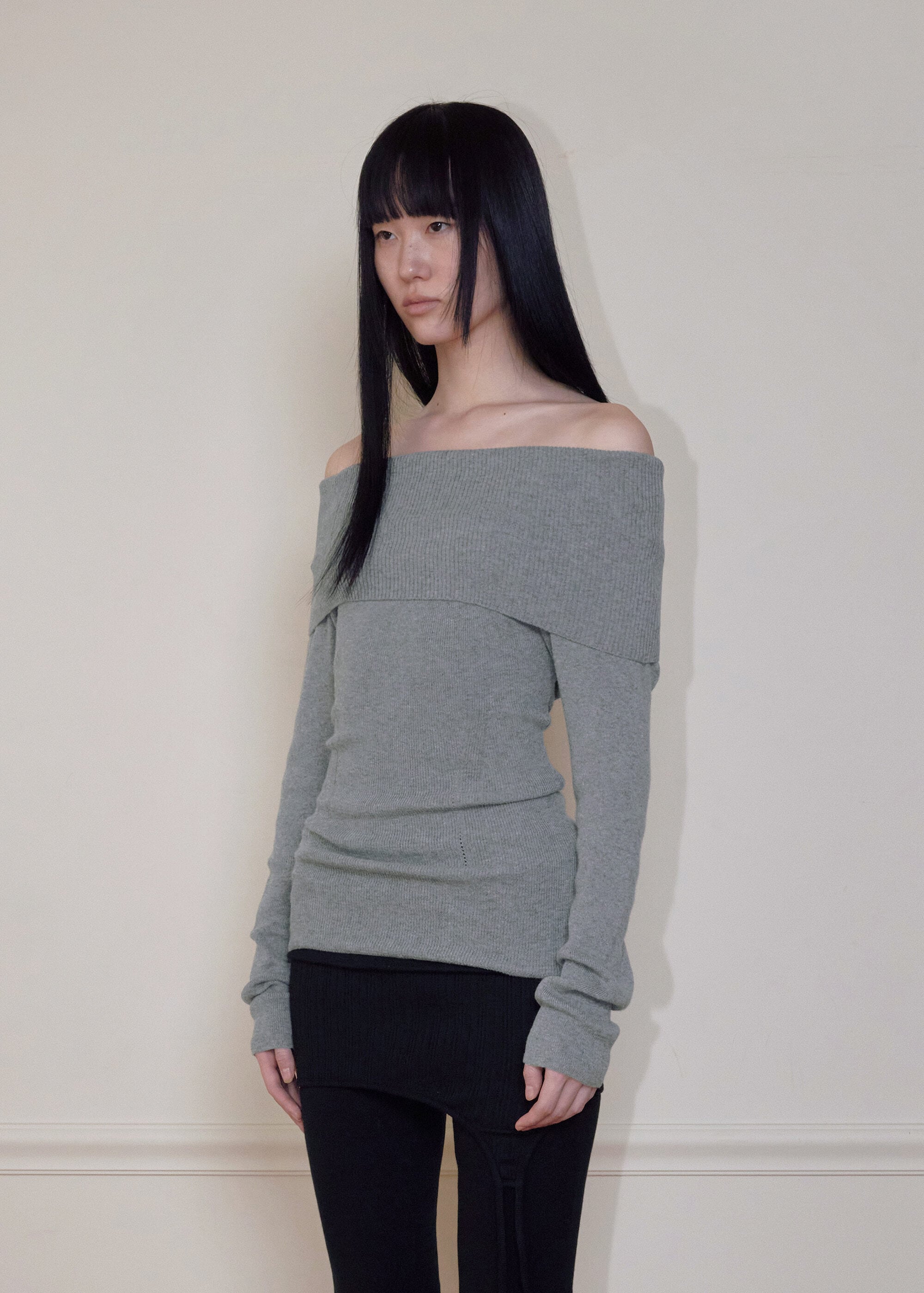 [BOHEMSEO] SILHOUETTE OPEN-SHOULDER KNIT, CHARCOAL