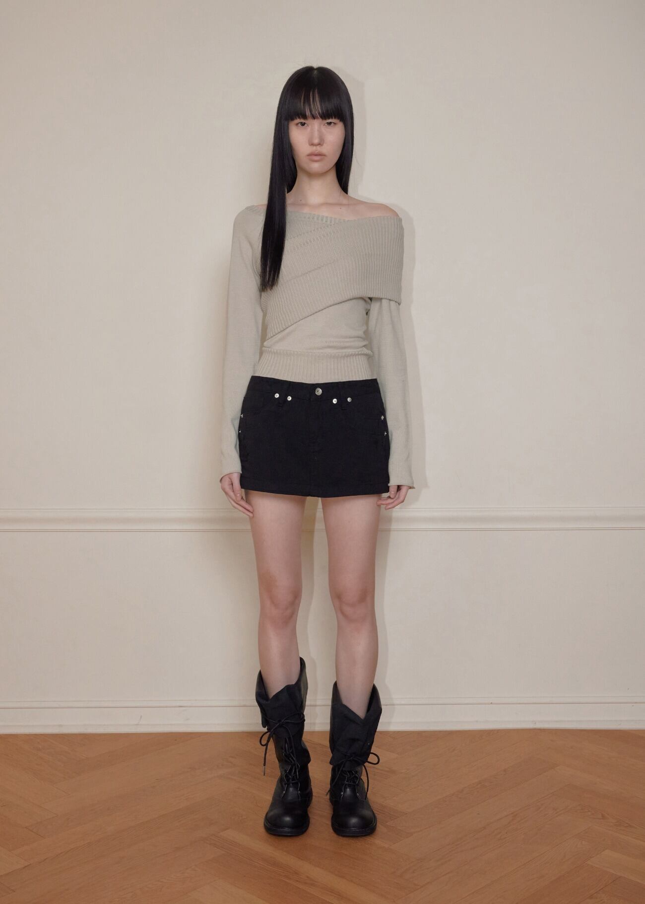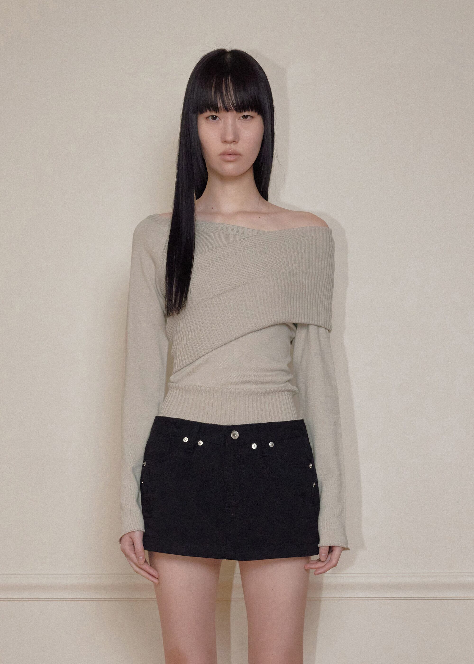 [BOHEMSEO] ONE-SHOULDER RIBBED KNIT, BEIGE 正規品 韓国ブランド 韓国通販 韓国代行 韓国ファッション BOHEMIAN SEOUL ボヘミアンソウル 日本 店舗