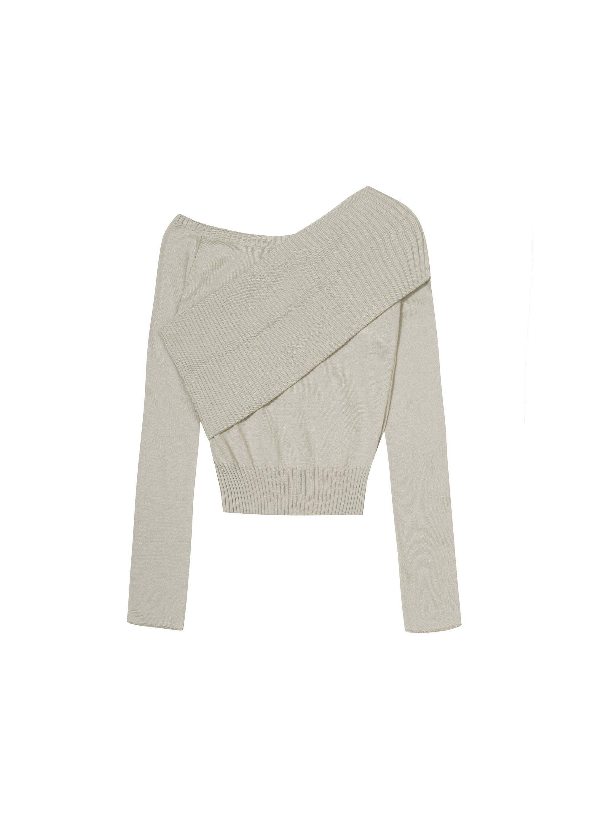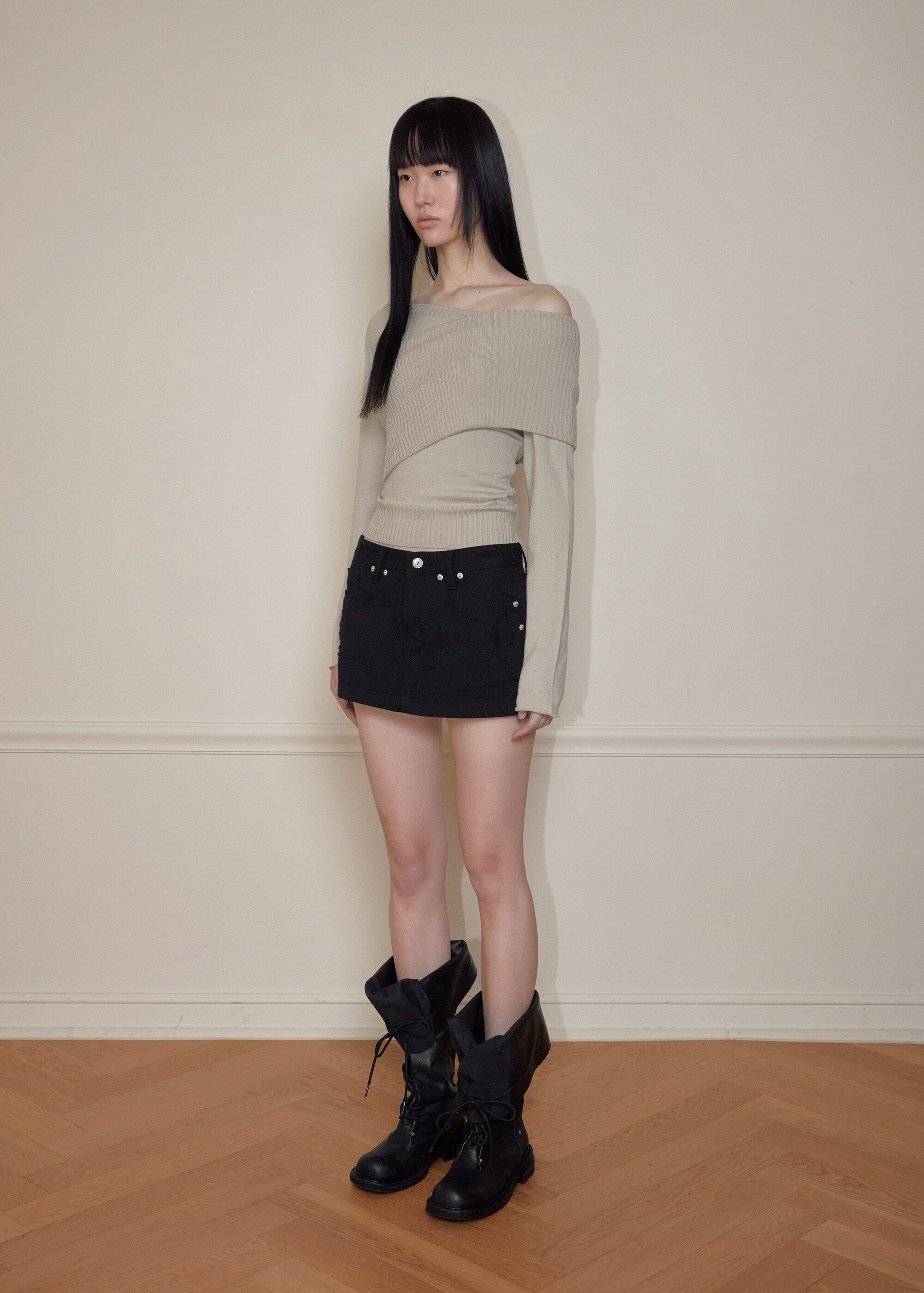 [BOHEMSEO] ONE-SHOULDER RIBBED KNIT, BEIGE