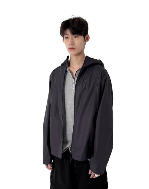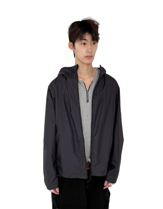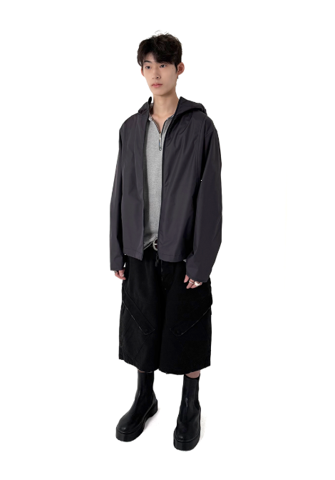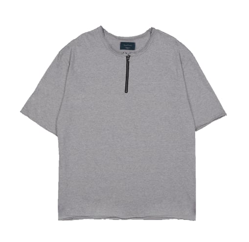[UNDERMYCAR] FADED CORE ZIP HALF SLEEVE - MELANGE GRAY