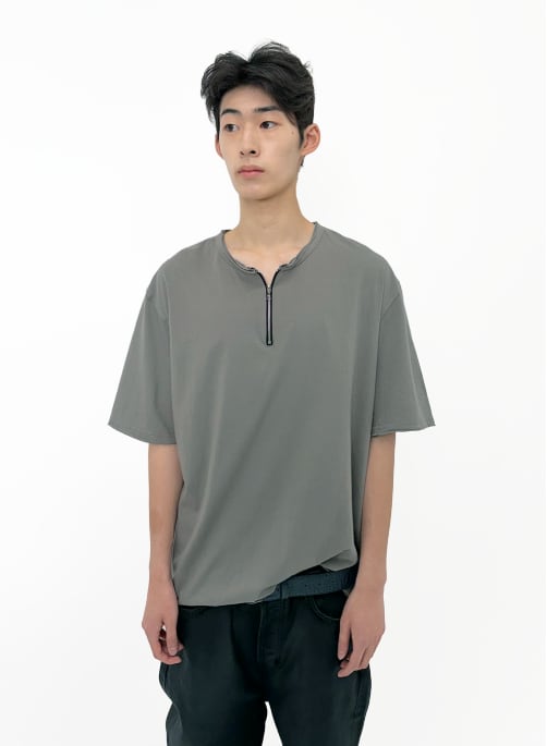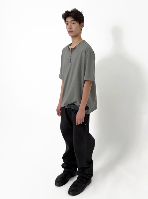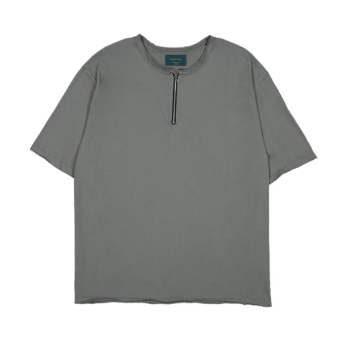 [UNDERMYCAR] FADED CORE ZIP HALF SLEEVE - ASH GRAY