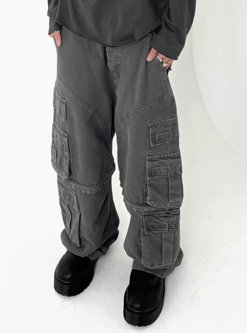 [UNDERMYCAR] COMBAT UTILITY CARGO PANTS - DARK GRAY
