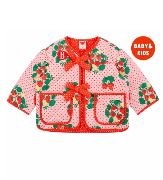 [BEBE DE PINO] All over strawberry dots baby ribbon padding jumper 正規品 韓国ブランド 韓国ファッション 韓国代行 韓国通販 ベベドピノ bebedepino 日本 店舗 韓国 子供服