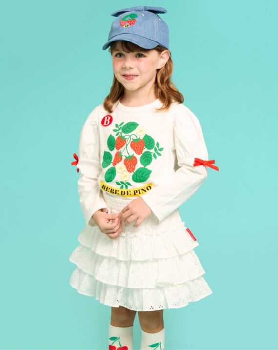 [BEBE DE PINO] Strawberry denim ribbon cap
