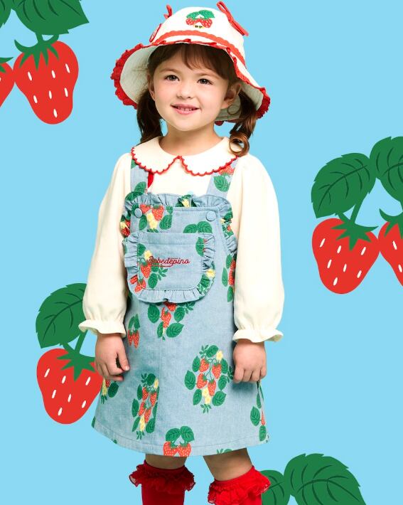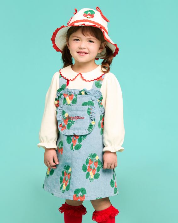 [BEBE DE PINO] All over strawberry baby denim dress 正規品 韓国ブランド 韓国ファッション 韓国代行 韓国通販 ベベドピノ bebedepino 日本 店舗 韓国 子供服